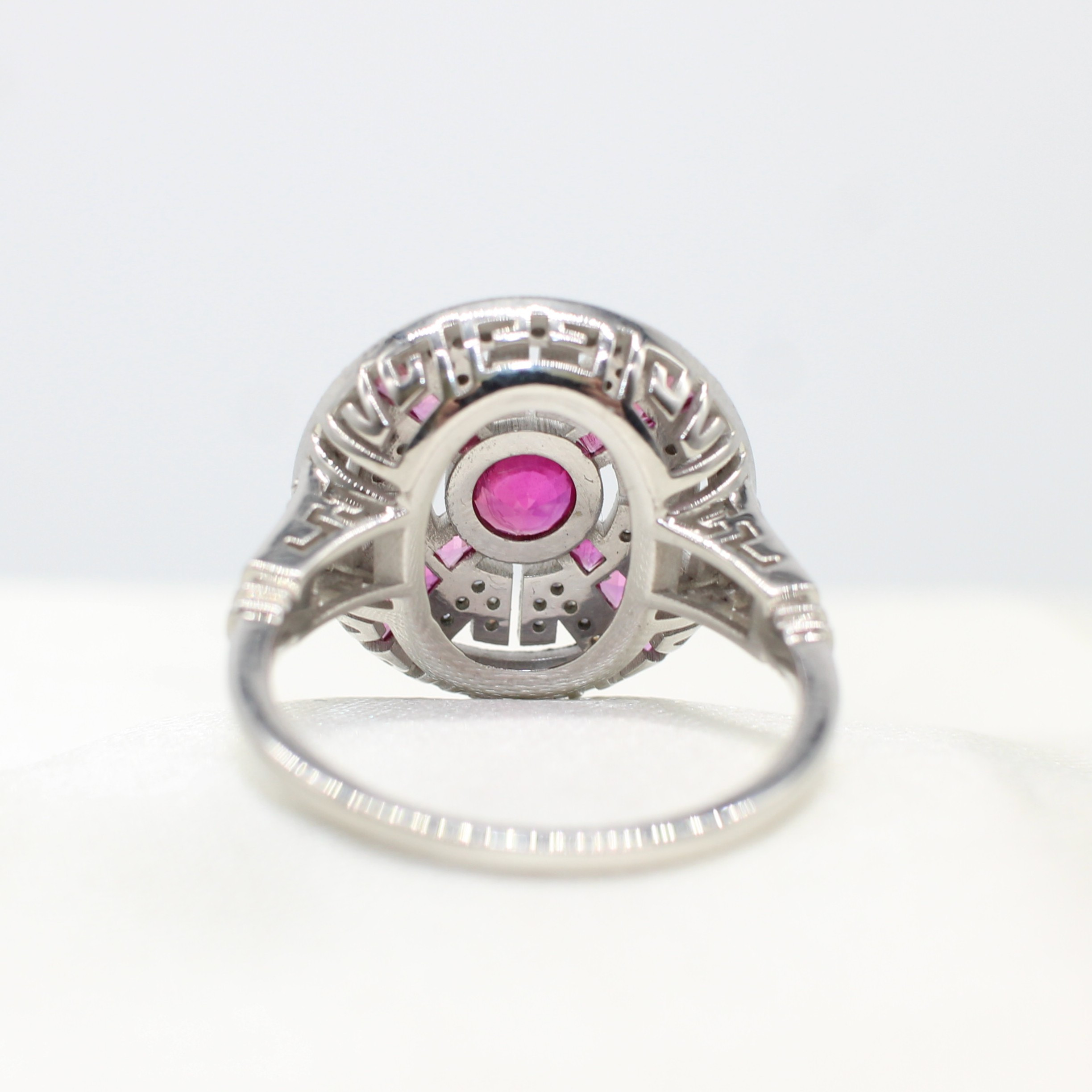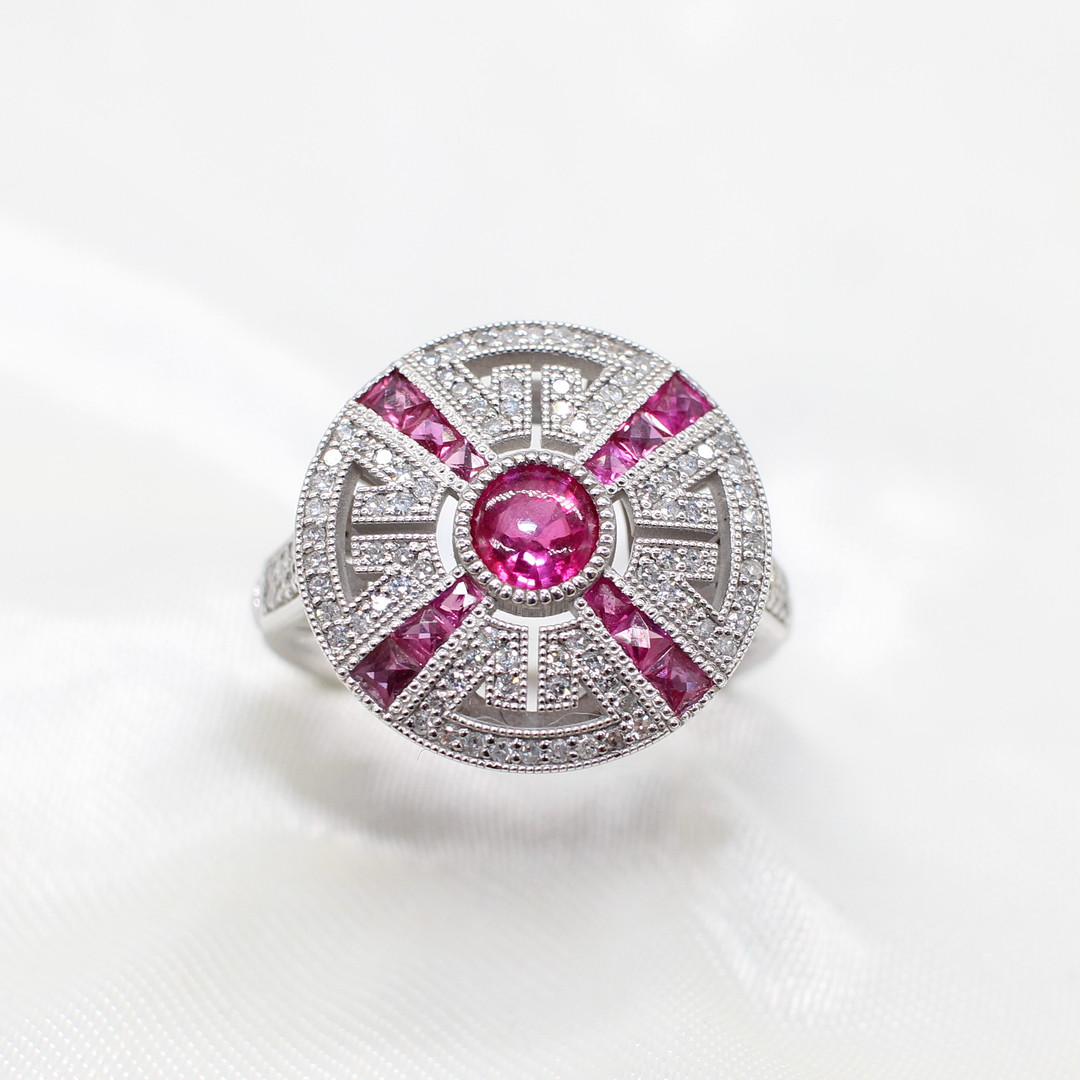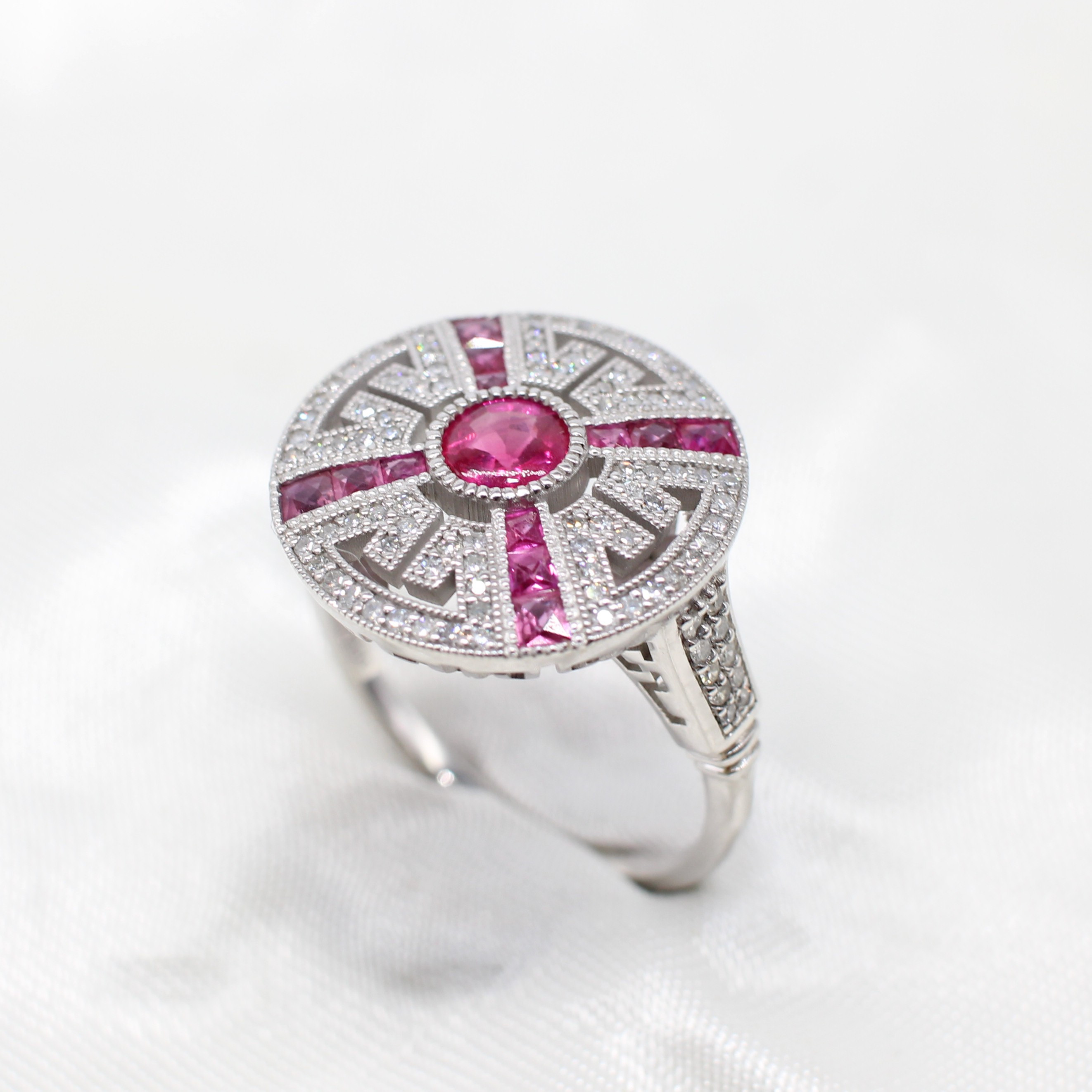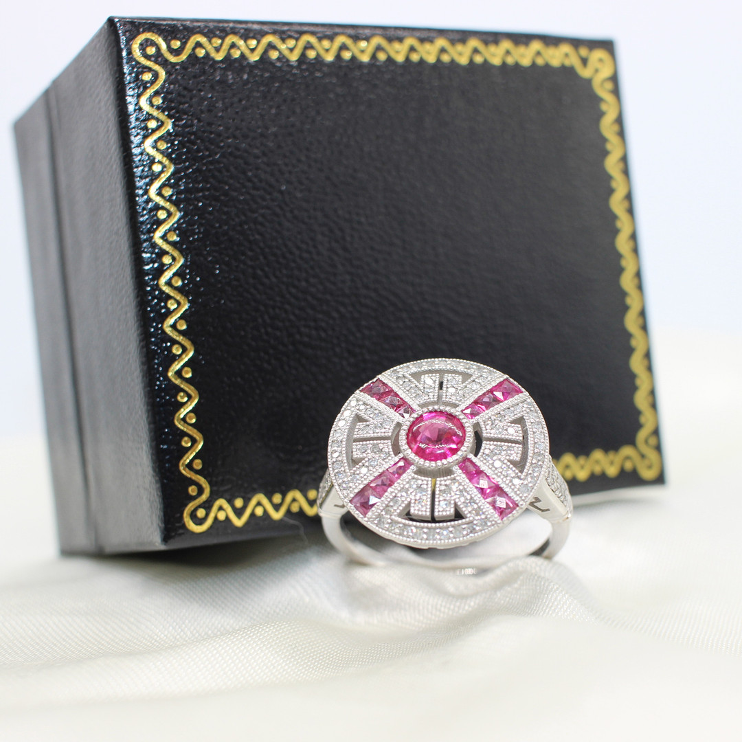 5004465. RUBY & DIAMOND TARGET RING IN PLATINUM.