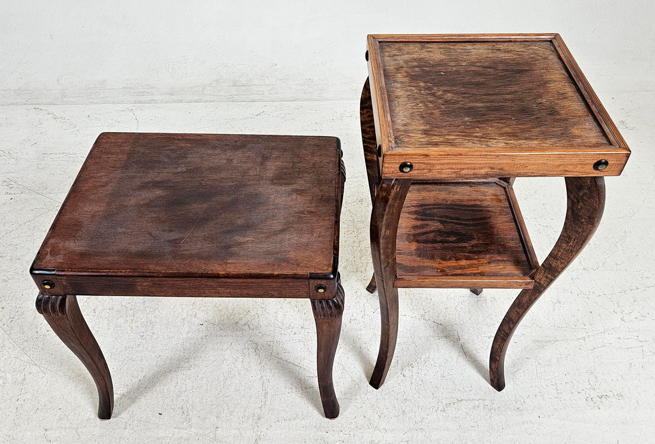 Pedestal, height approx. 64 cm. Table, length approx. 48, width 37, height 44 cm.