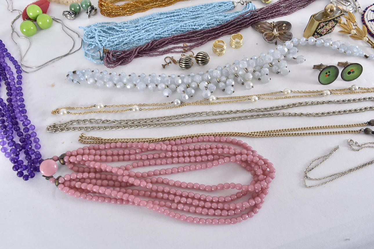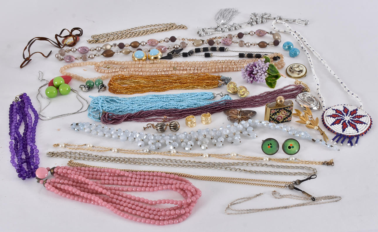 Necklaces, earrings, brooches etc Box dimensions 23x17 cm, height 9,5 cm.