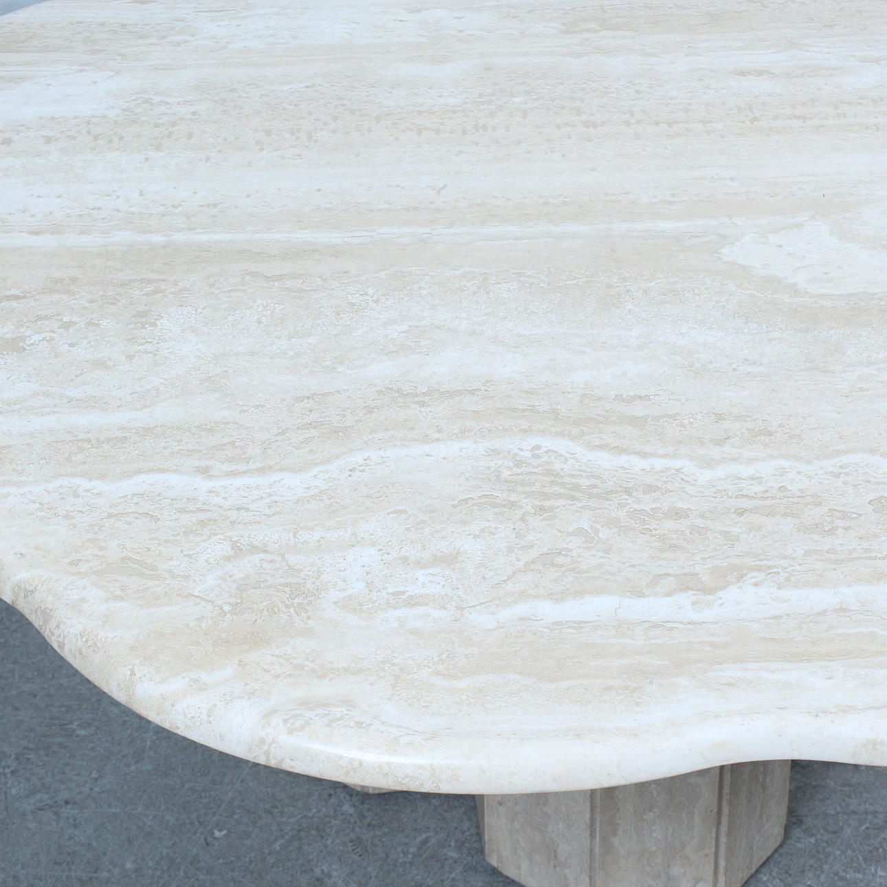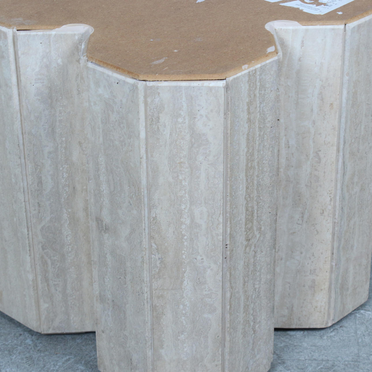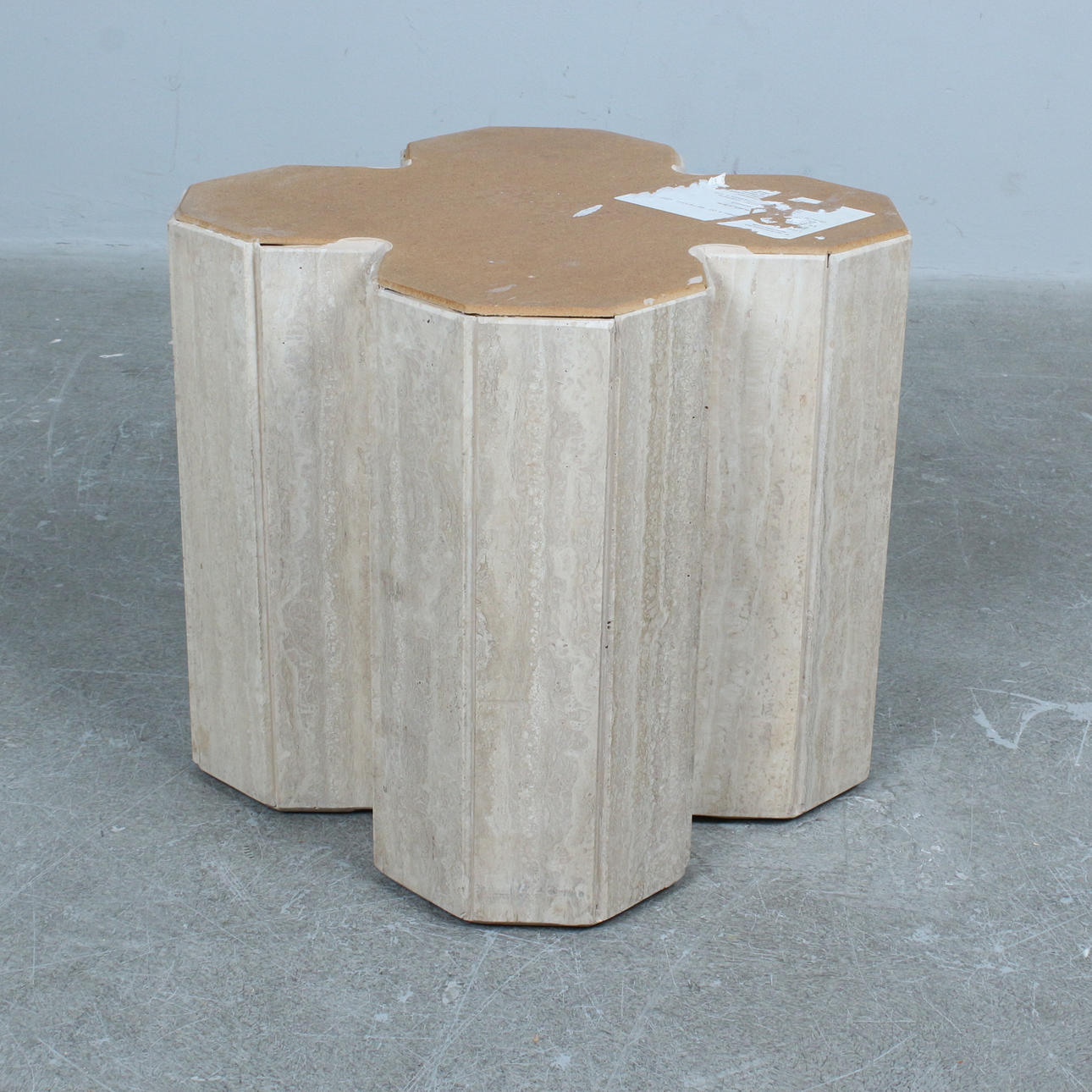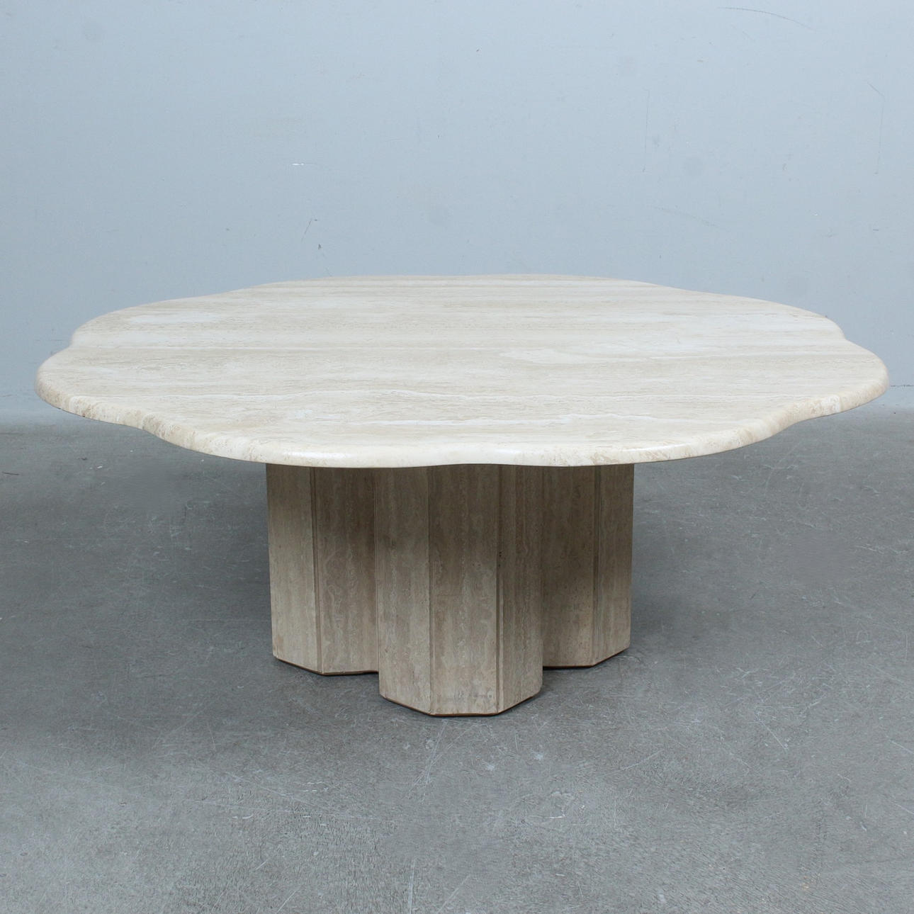 5004618. Travertine table with flower-shaped table top from the 1970s.