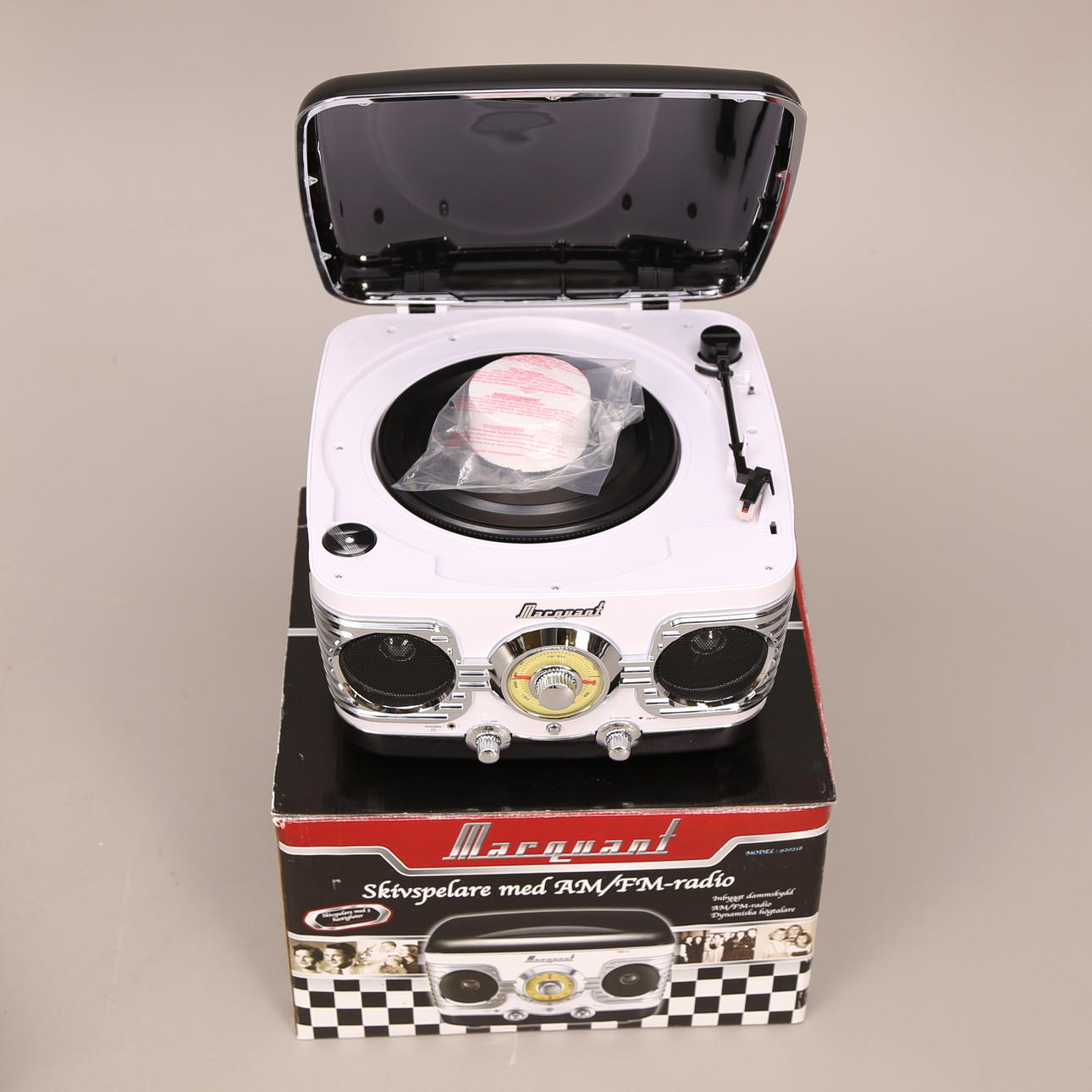 Record player with radio, original box, height 23 cm, 36x40 cm, was not unpacked from the box, i.e. new condition.