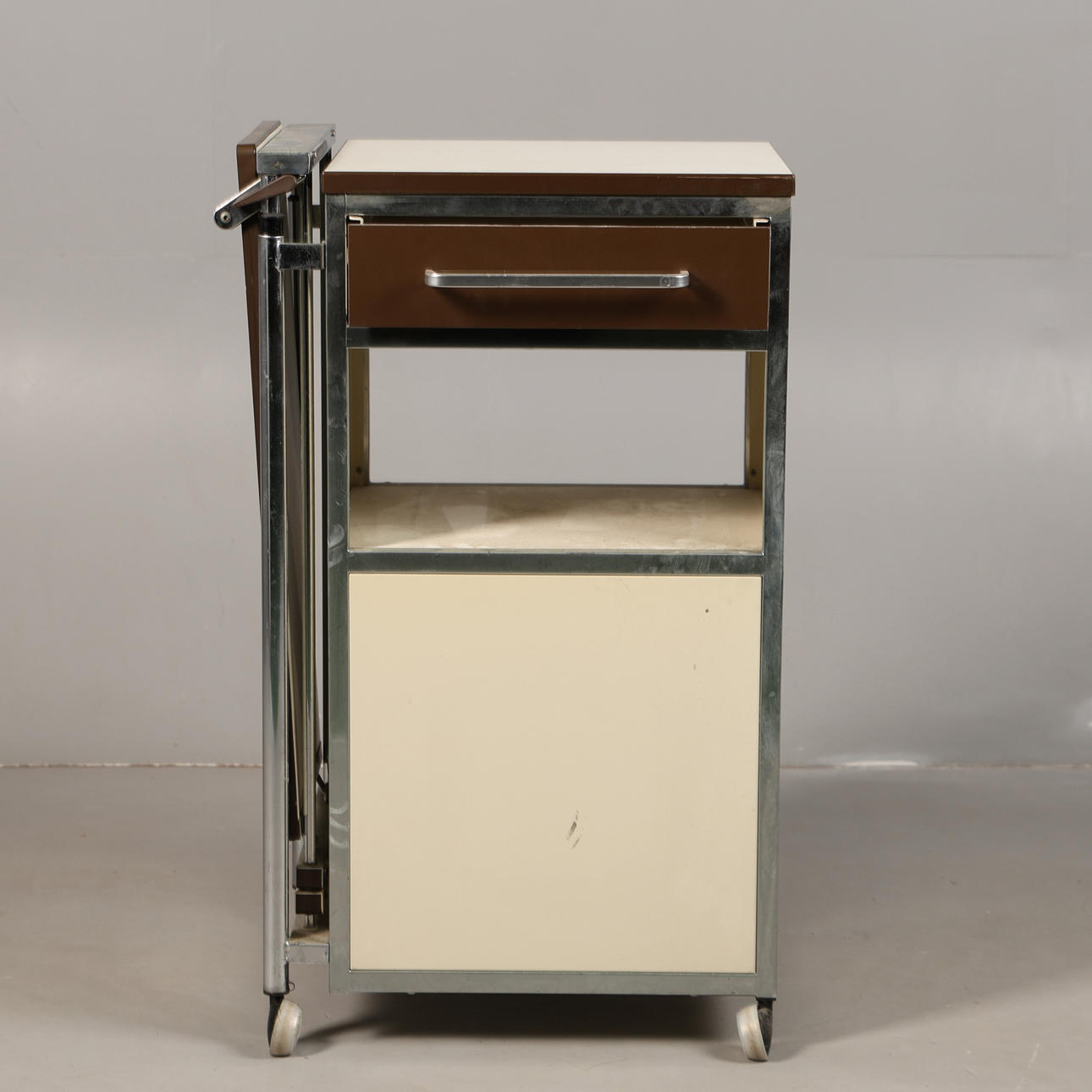 Having drawers and a folded-out ironing board, 87cm wide 39cm wide.