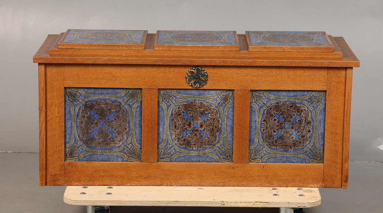 Nice coffer, unusual, locked and lacking key, some minor wear but in good overall order.