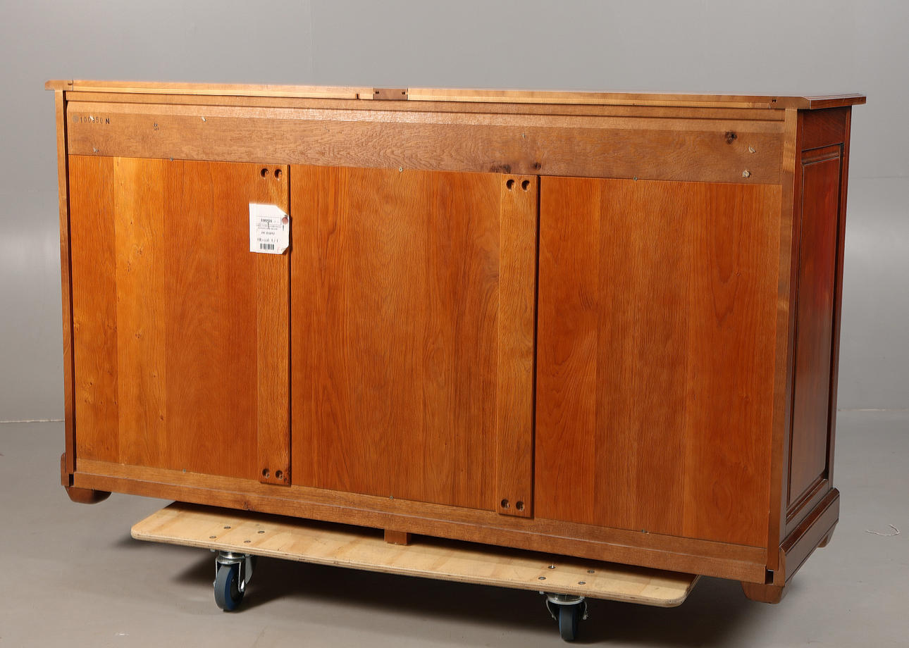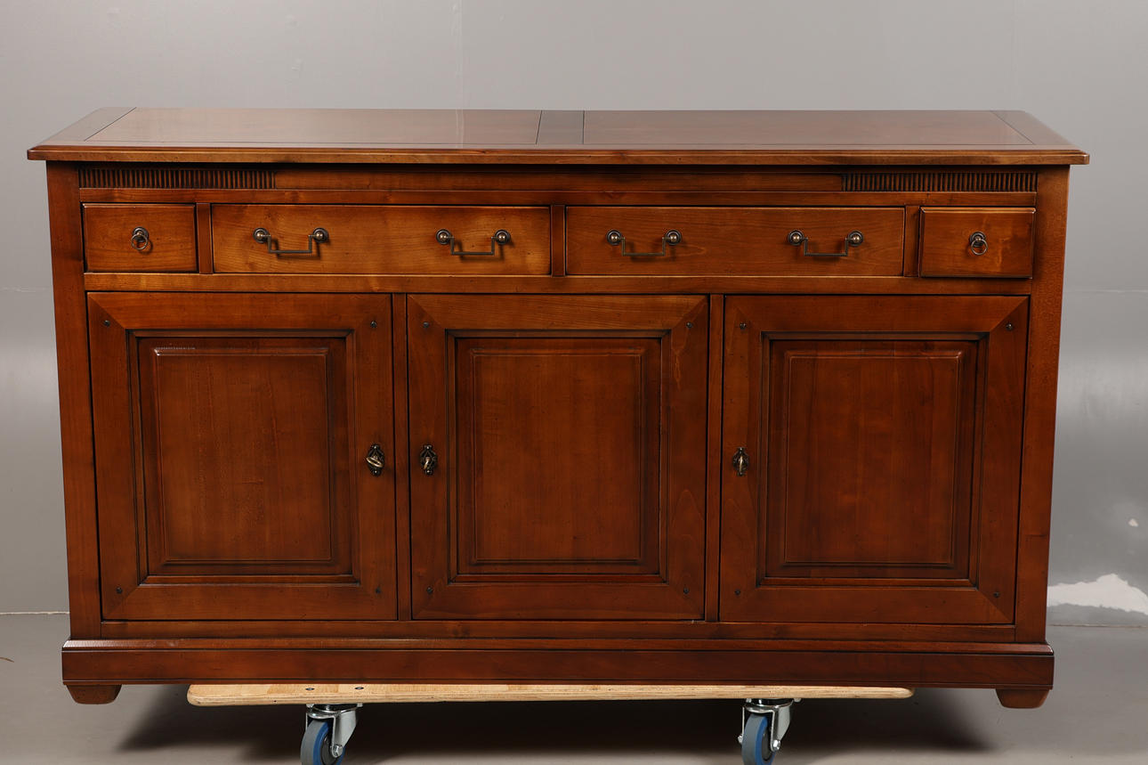 The rectangle top above four drawers and three cupboard doors, 165cm wide 92cm high 50cm deep.