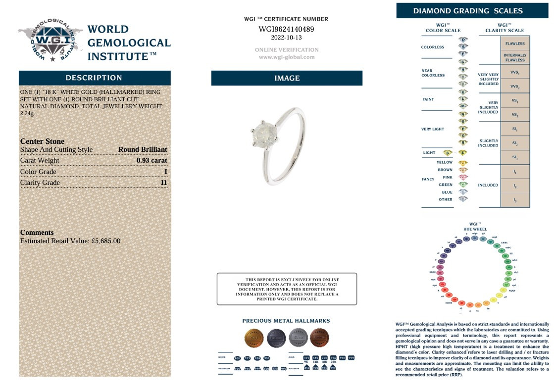 5004804. CERTIFIED 0.93CT DIAMOND SOLITAIRE RING.