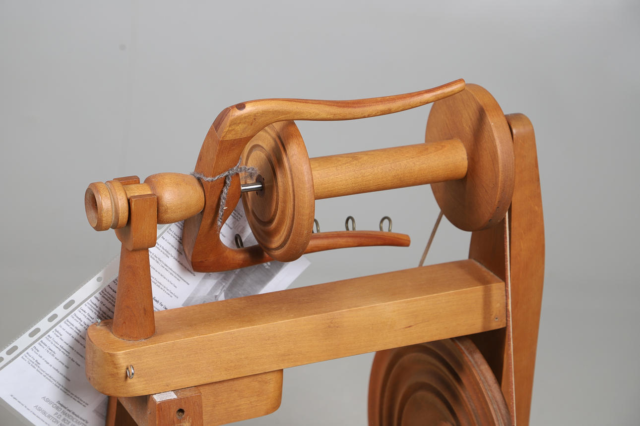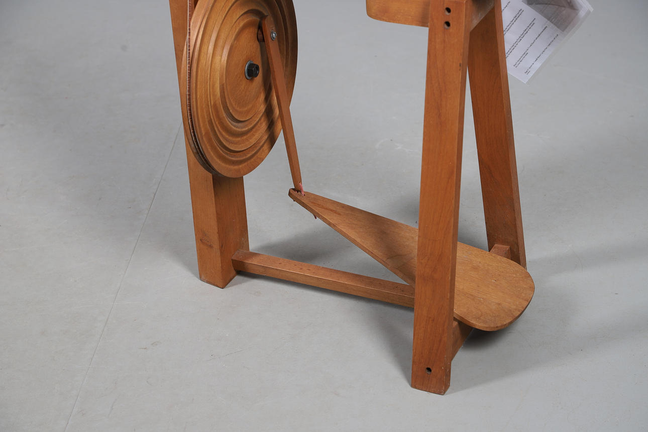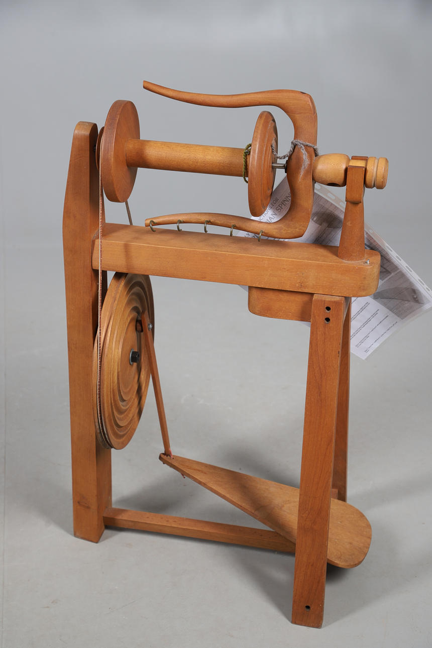 Designed to spin yarns used by the indigenous Cowichan Tribes of British Columbia, with print out instructions and guide, H81cm x L46cm.