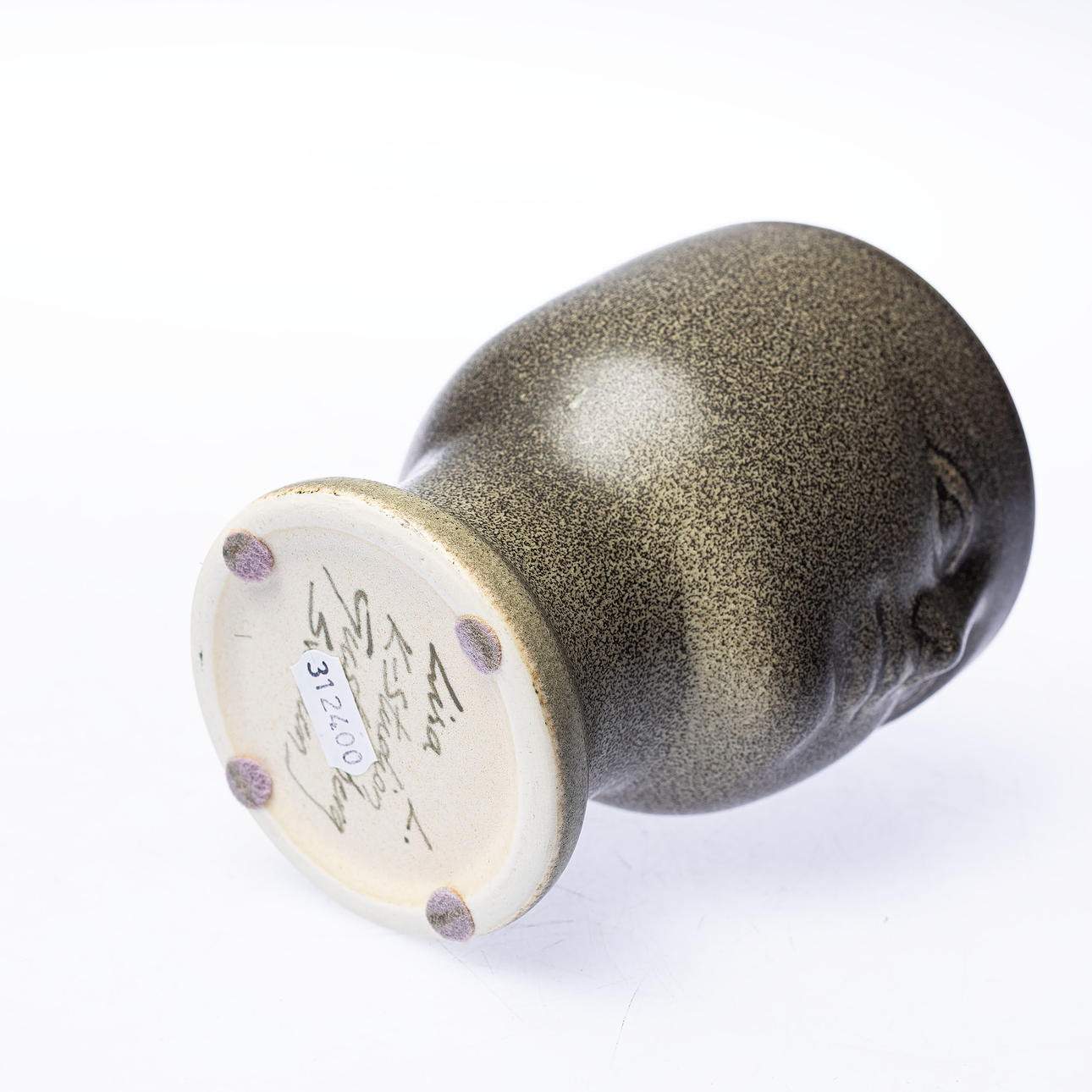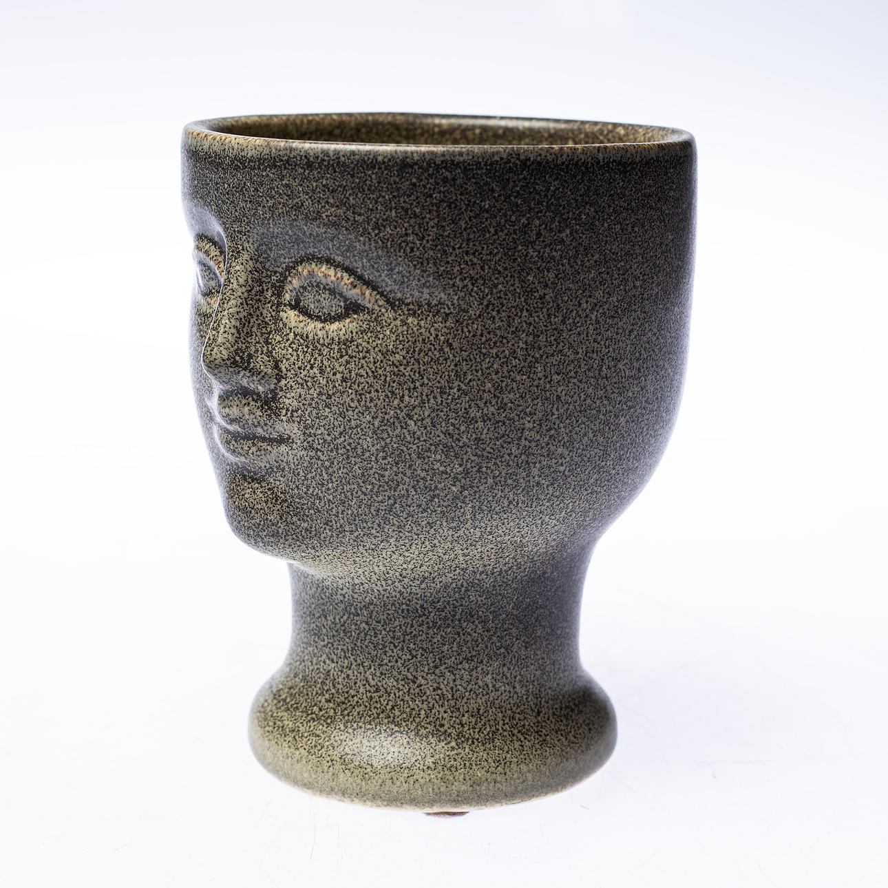 5004860. LISA LARSON. Vase/Outer lining, face decor, stoneware, K-Studion, Gustavsberg, signed.
