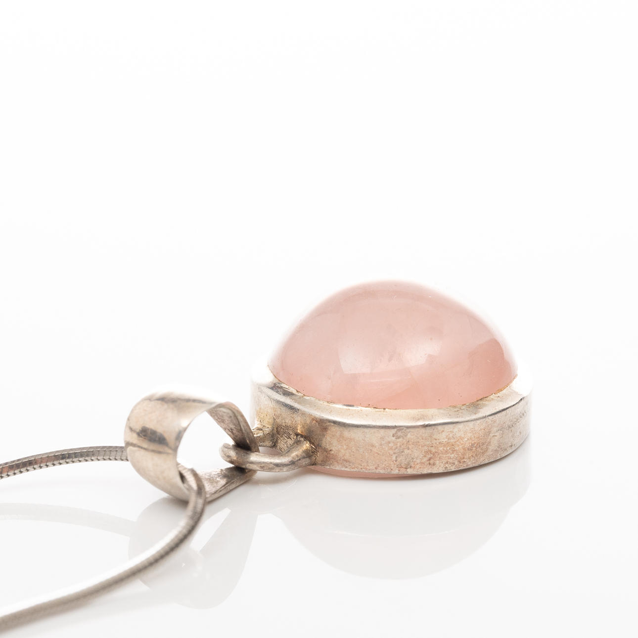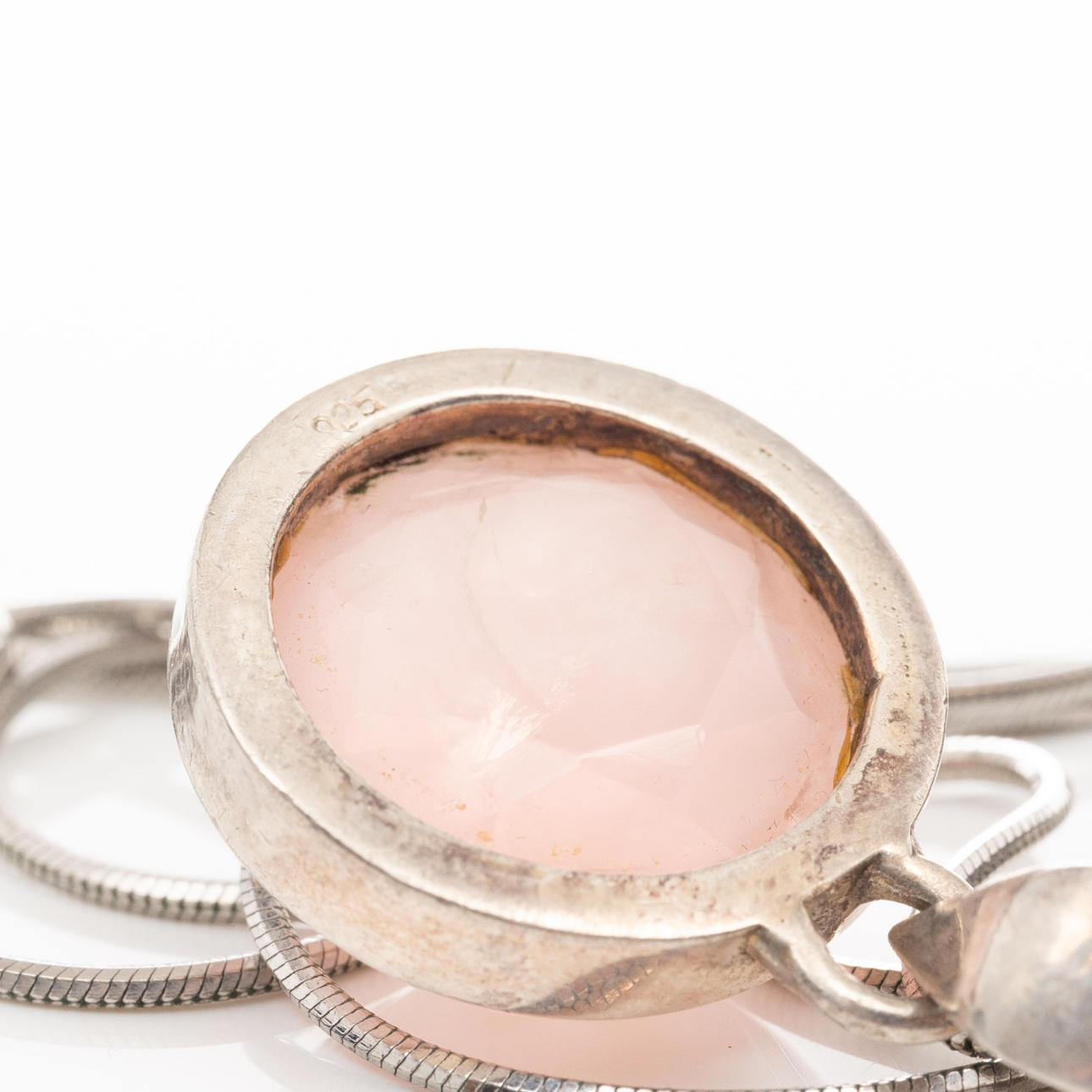 Sterling silver necklace with a cut rose quartz