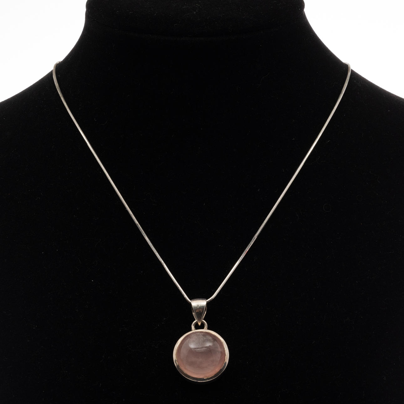 NECKLACE. Sterling silver. Rose quartz.