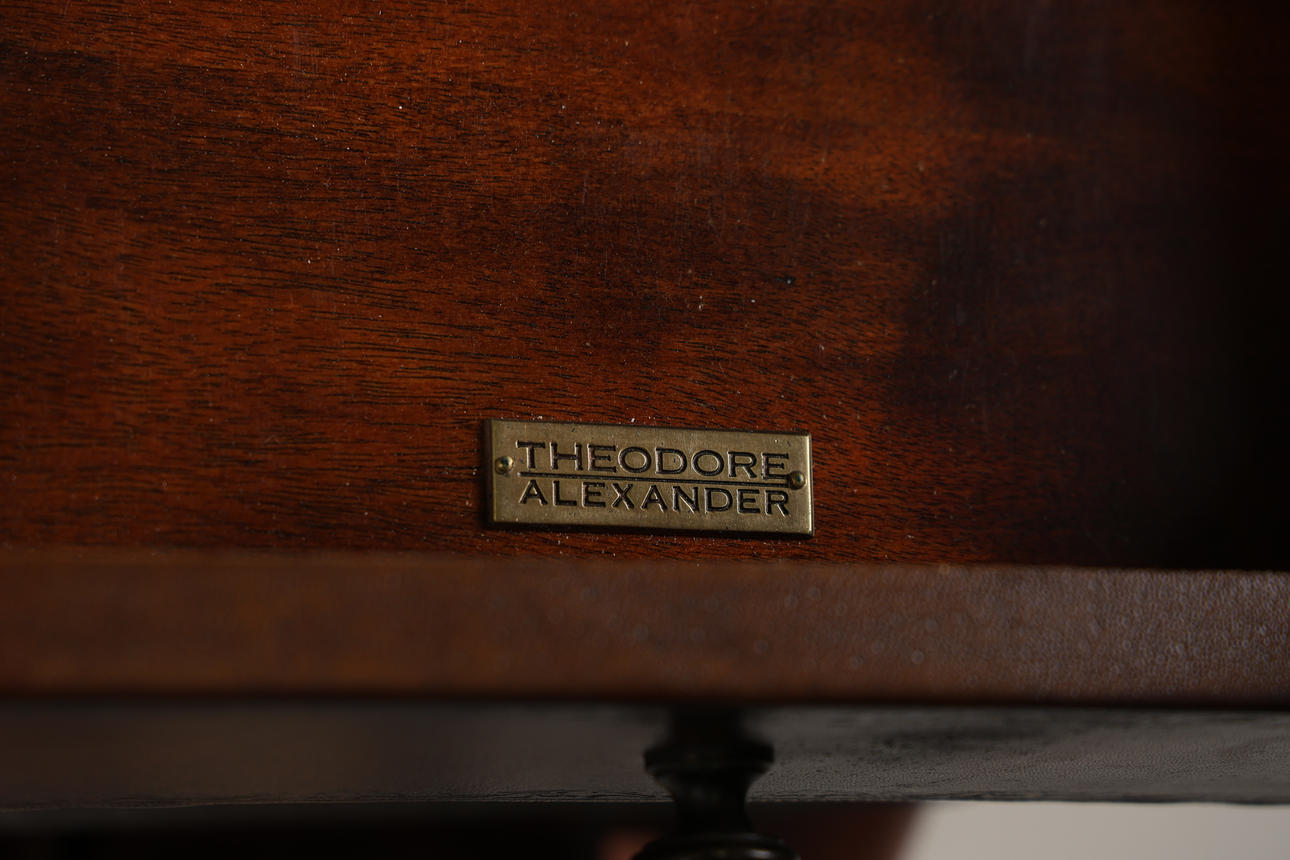 5005429. THEODORE ALEXANDER; A OAK AND LEATHER-STYLE SIDEBOARD.