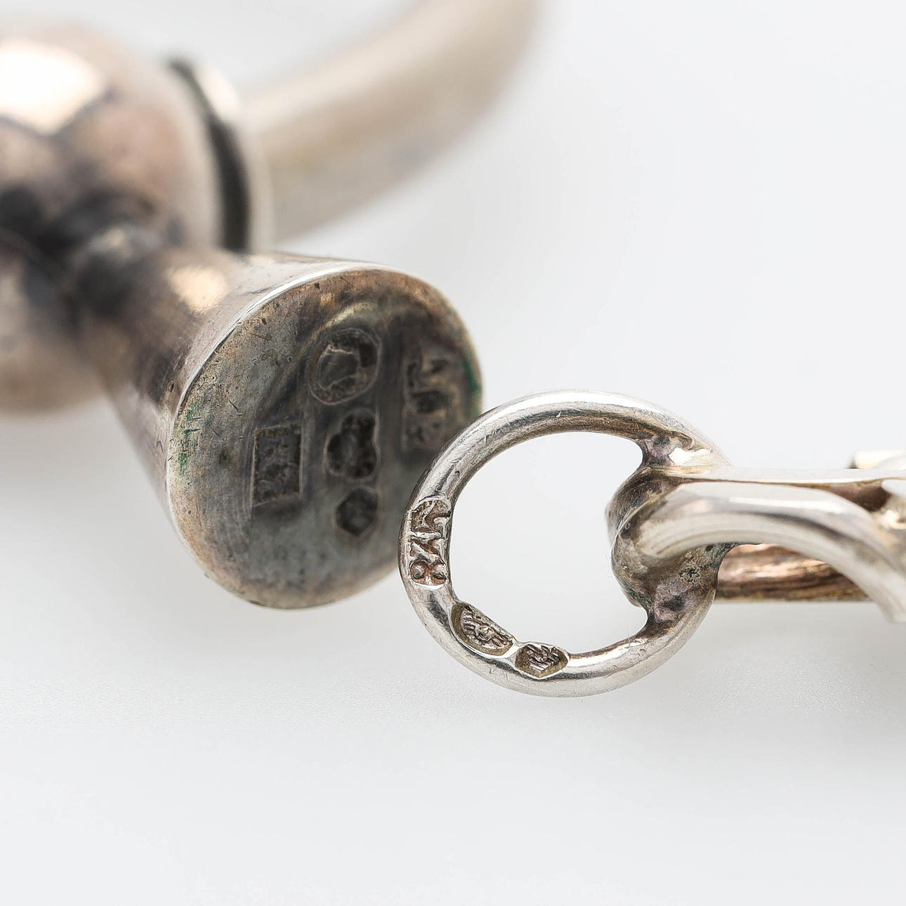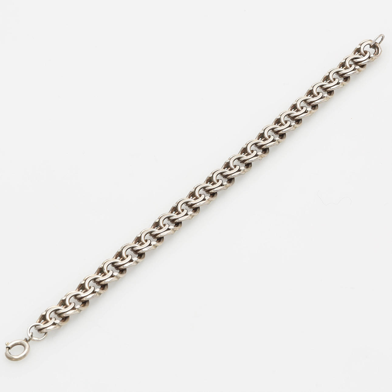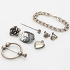 1 bracelet, bismarck bracelet, length 19 cm. 1 pendant, heart. 1 pair of earrings with screw mechanism. 1 brooch, Alton, moonstone. 1 brooch/costume pin, Stockholm 1919. 1 brooch, rose. 1 needle. Weight 49 grams.