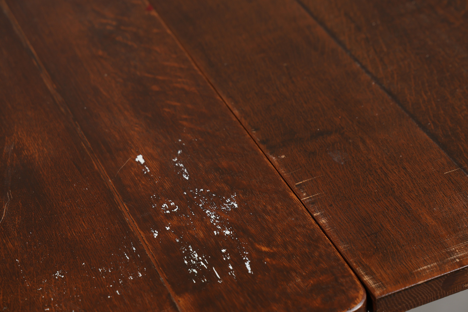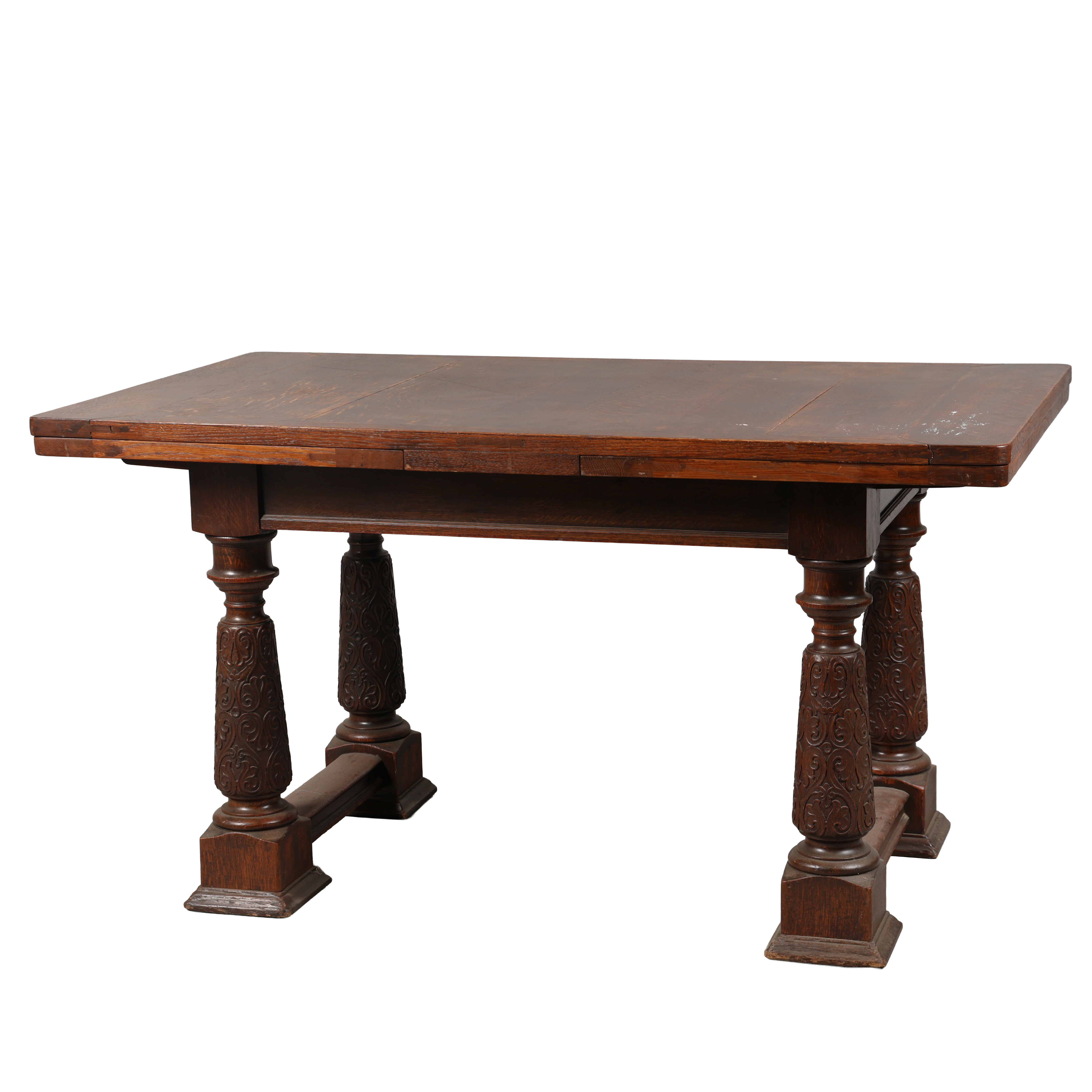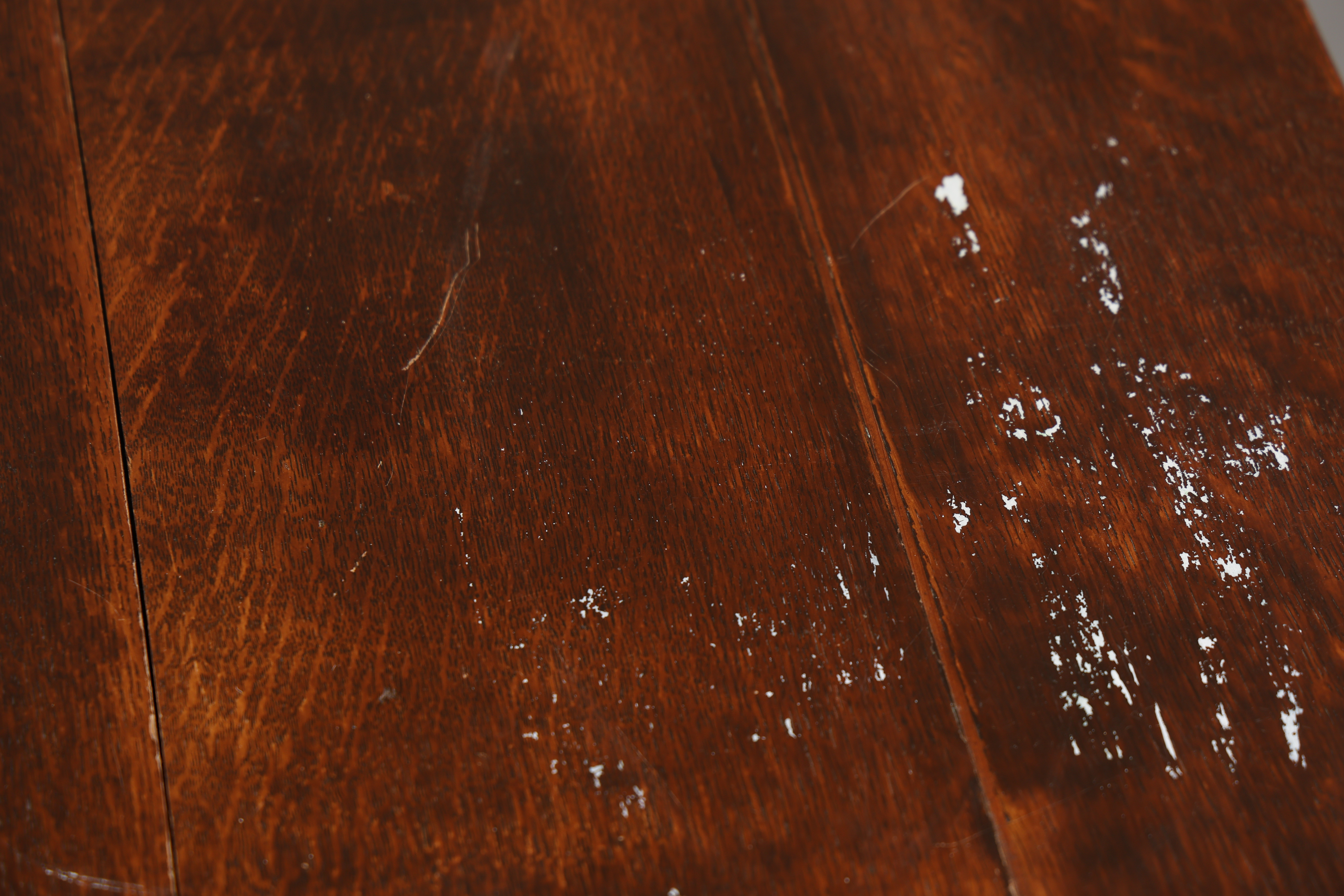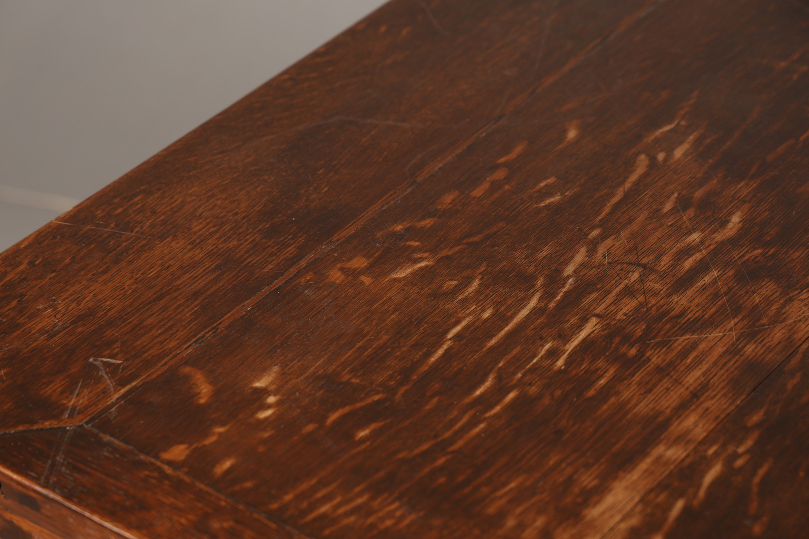 5005568. A 20TH CENTURY OAK DRAWER LEAF DINING TABLE.