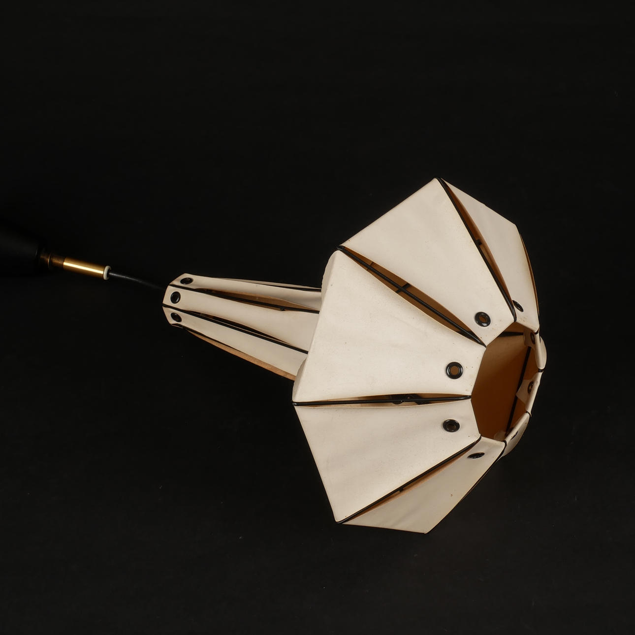 Screen in gallons. Cup part in black lacquered metal with brass detail. Cup marked.