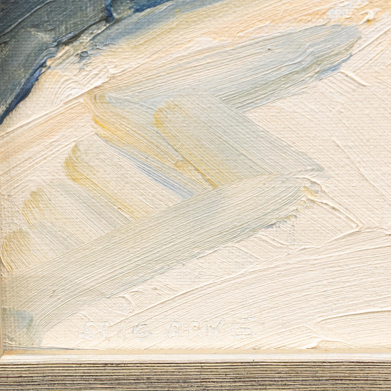 5005822. STIG ARNE. “Stone head”, oil on canvas, signed.