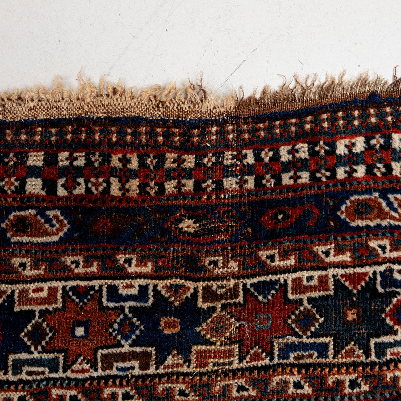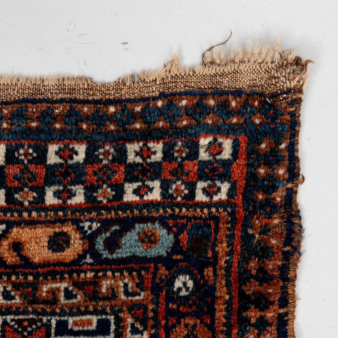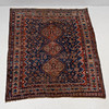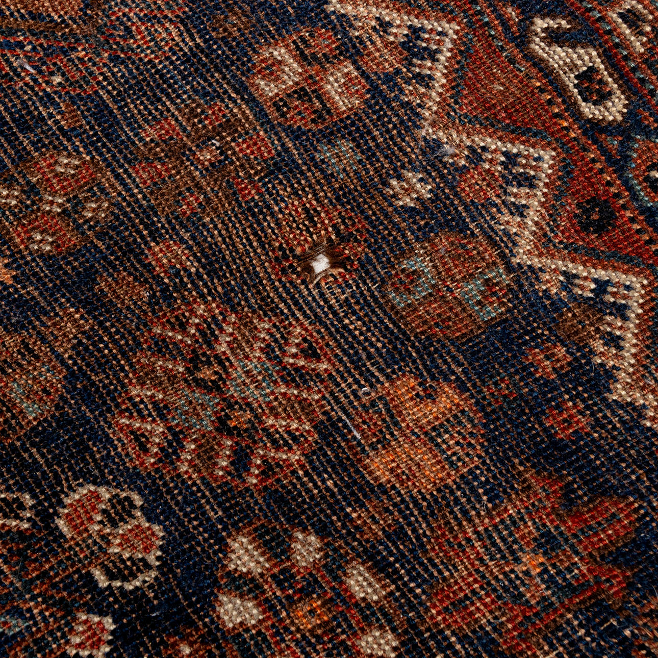 Dark blue base with polychrome stylized floral, star-shaped and boteh pattern, 3 medallions, approx. 311x228 cm.