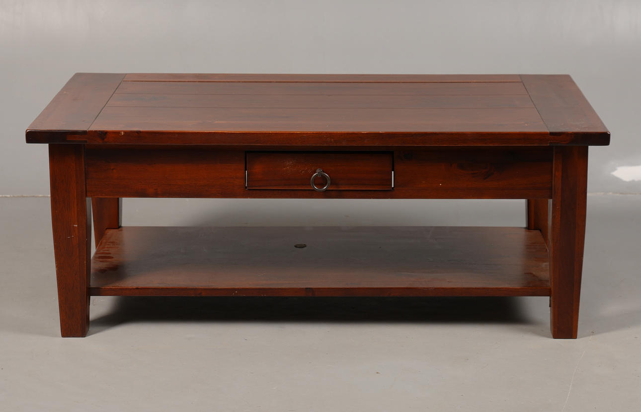 The rectangular top above a single drawer to the front, united by an undertier, 115cm wide 60cm deep 46cm high.