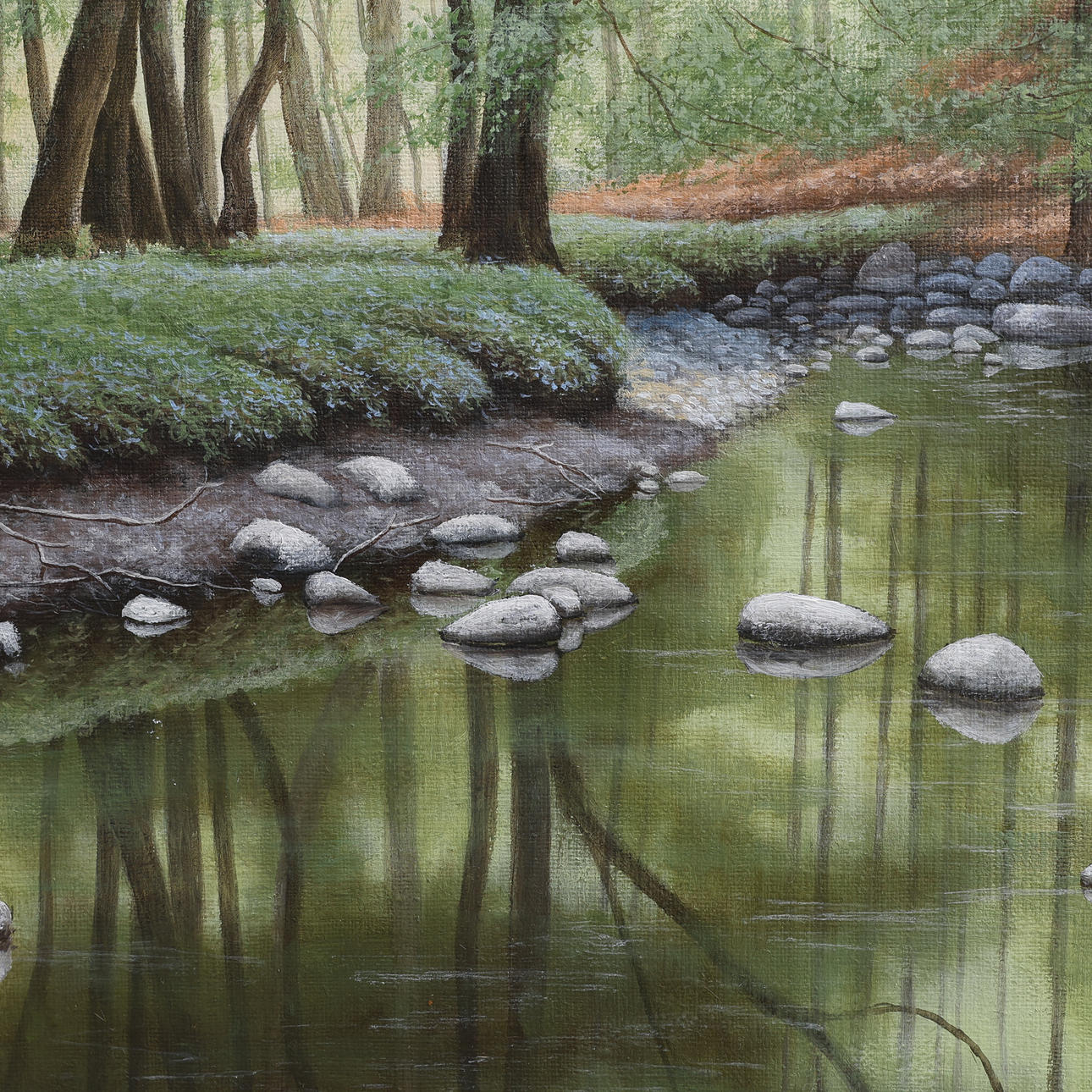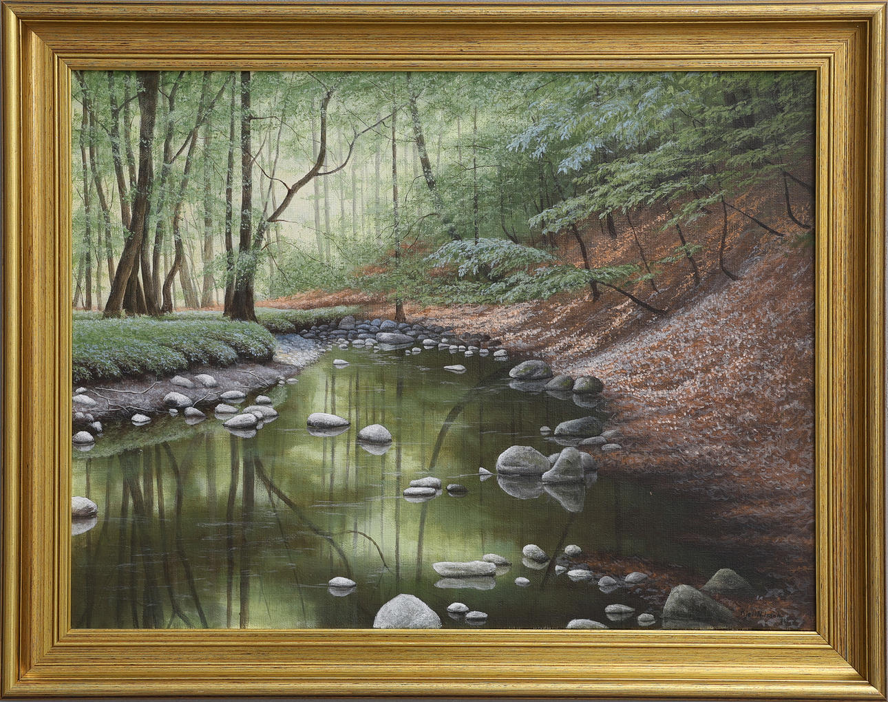 KJELL NILSSON. OIL ON CANVAS, STREAMS IN DECIDUOUS FOREST, SIGNED & DATED -96.