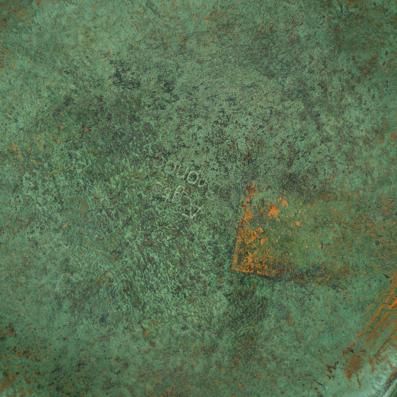 Age and use patination, including scratches and marks.