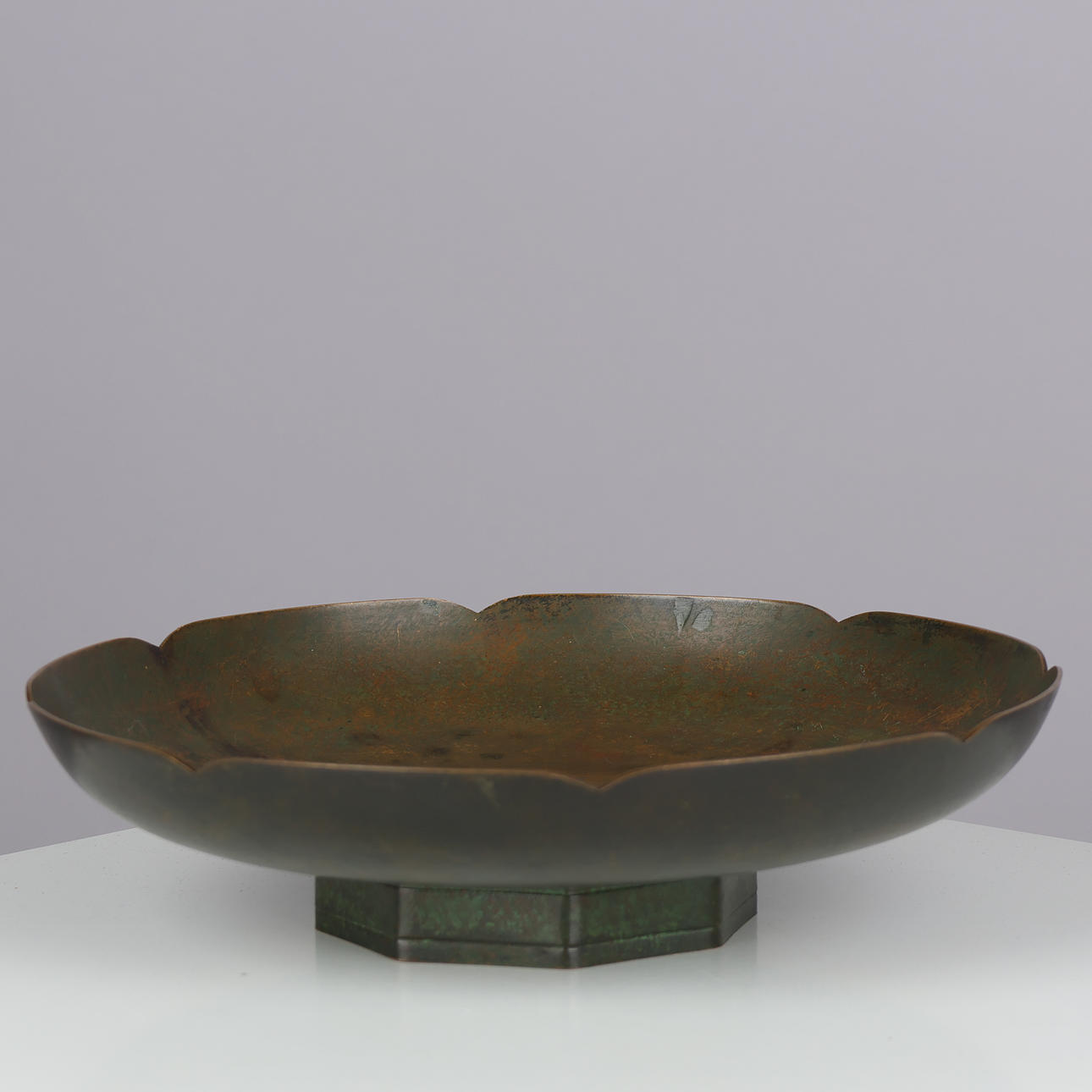 5006104. Patinated bronze dish with undulating edge and octagonal base, Art Deco, Denmark, 1920/1930s.