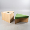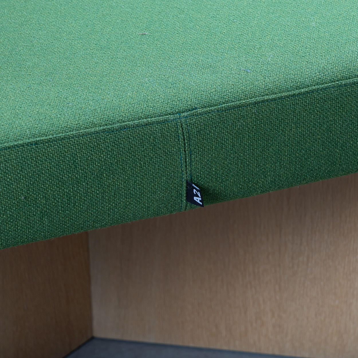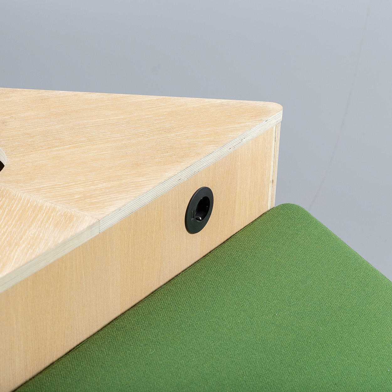 White oiled oak with 1 seat, green textile cushion, table with electrical outlet