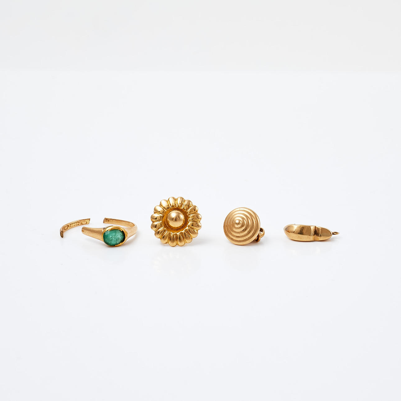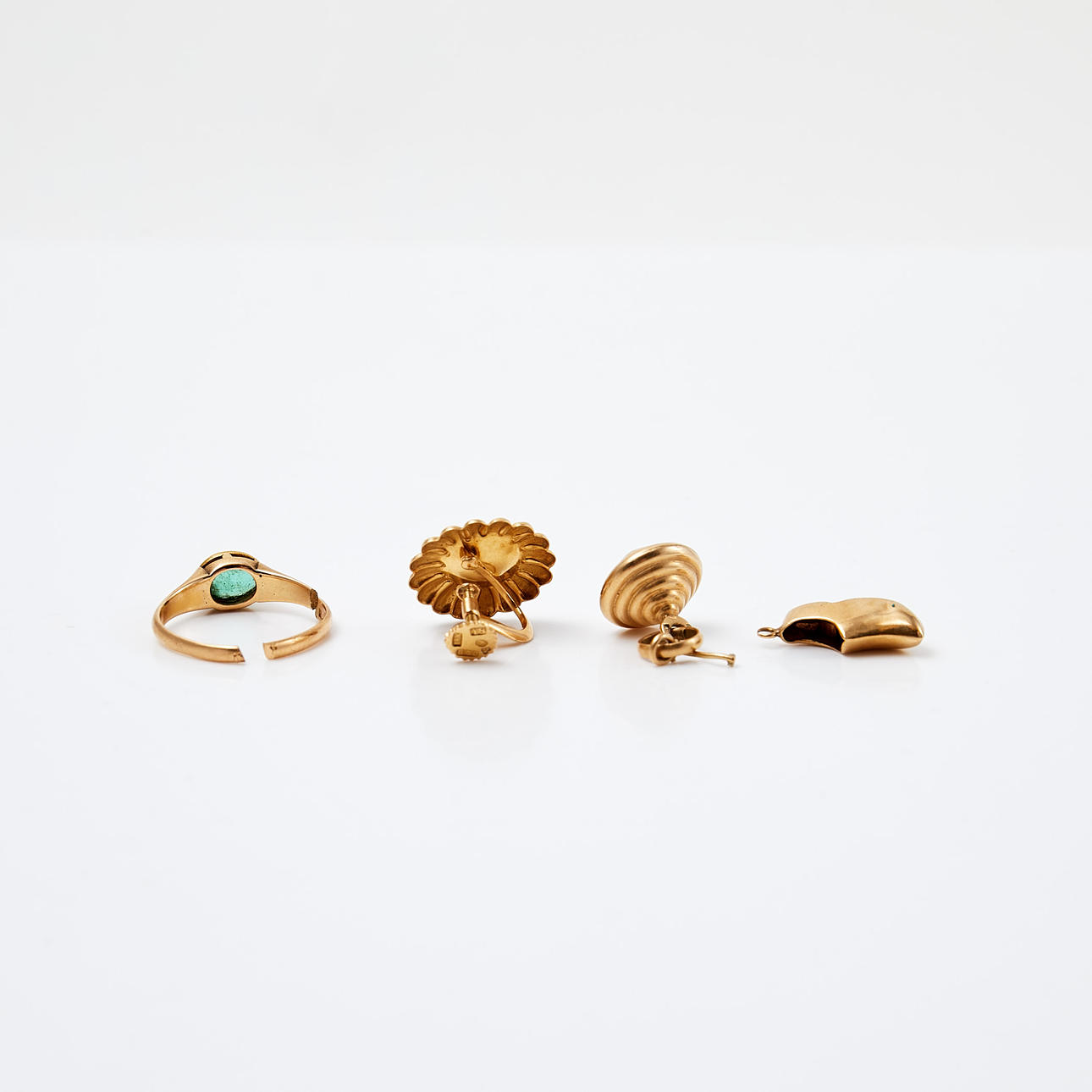 Normal wear and tear, ring with damage/broken ring rail, earring with damage.