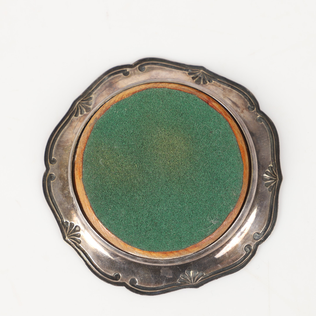 5006325. COASTERS, 3 pieces, silver and nickel silver.