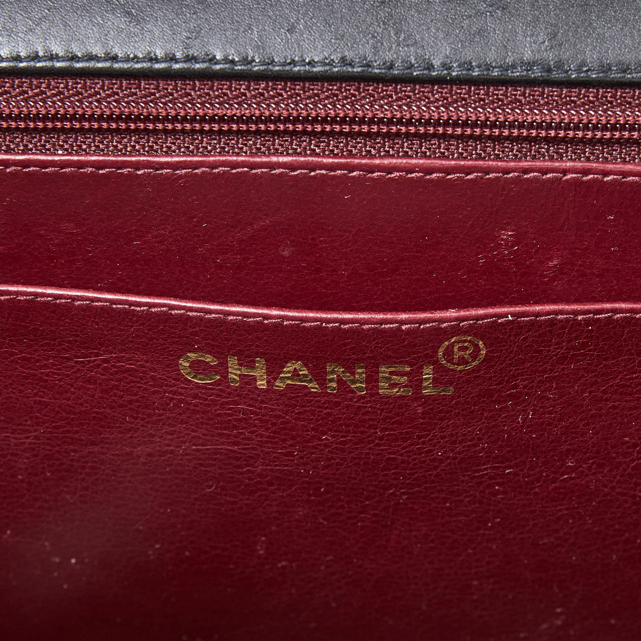 Black quilted lambskin, with matching stitching, lock and chain with interwoven leather in gold-tone metal, lined in red leather, interior with two compartments, one with a zipper, marked "Chanel made in France", partially rubbed date code, dimensions approx. 34 x 23 x 10 cm.