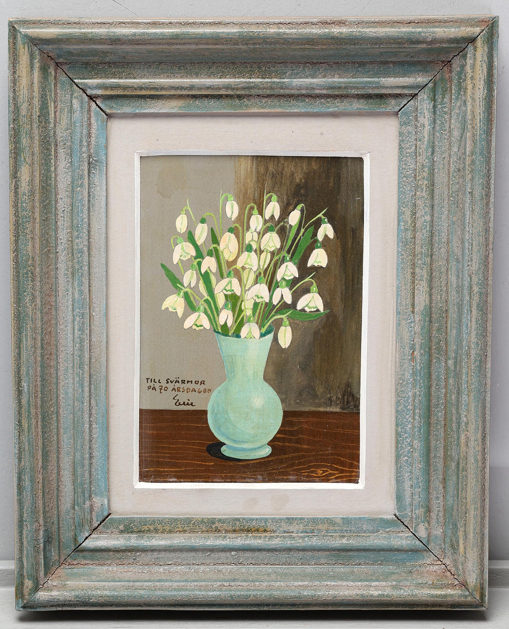 Dedicated to mother-in-law on the 70th anniversary. Frame dimensions approx. 36,5 x 29,5 cm.