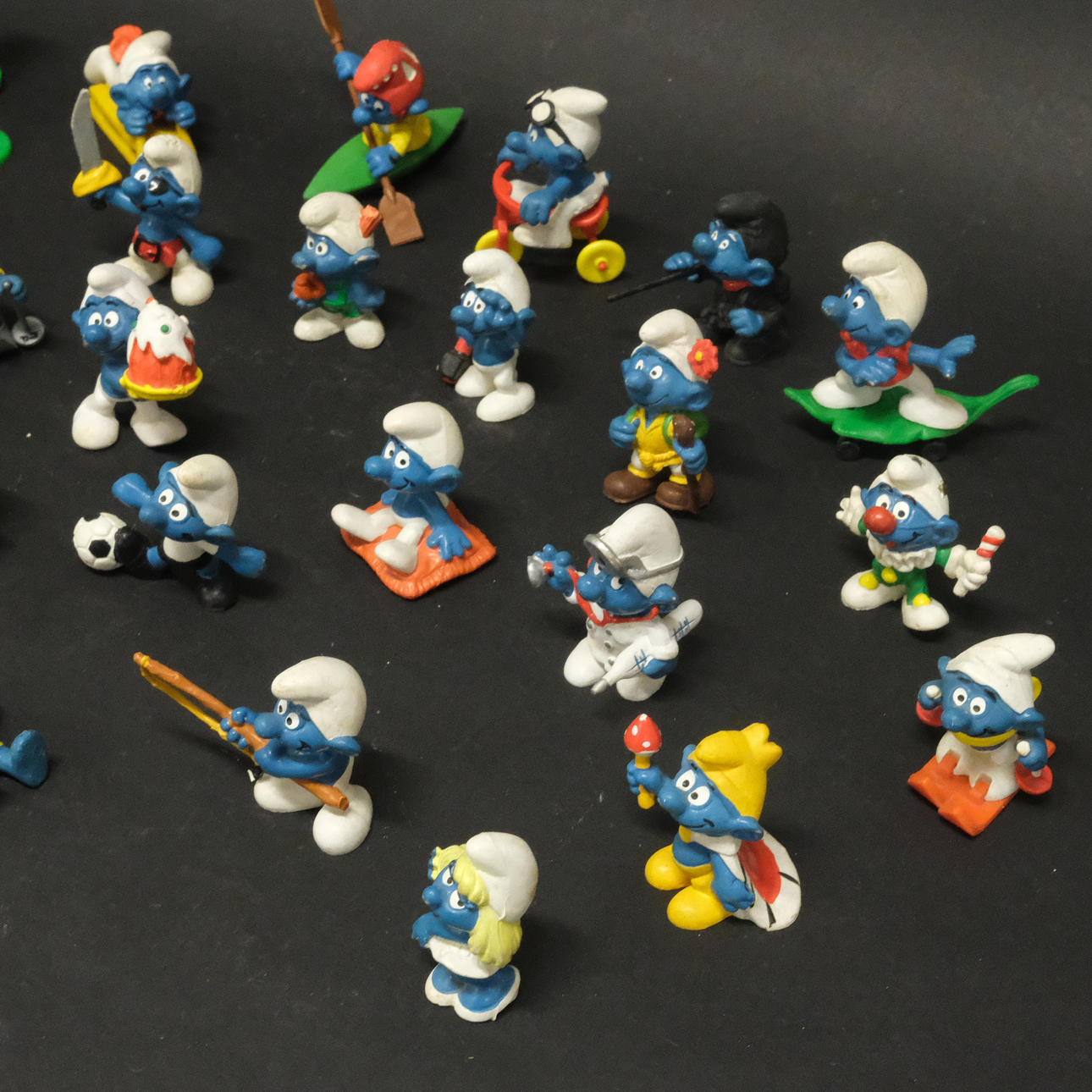 31 Smurfs, some with loose accessories.
