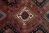 Having a red ground decorated with hooks and medallions, together with repeating borders and tassel ends, 200cm by 190cm.