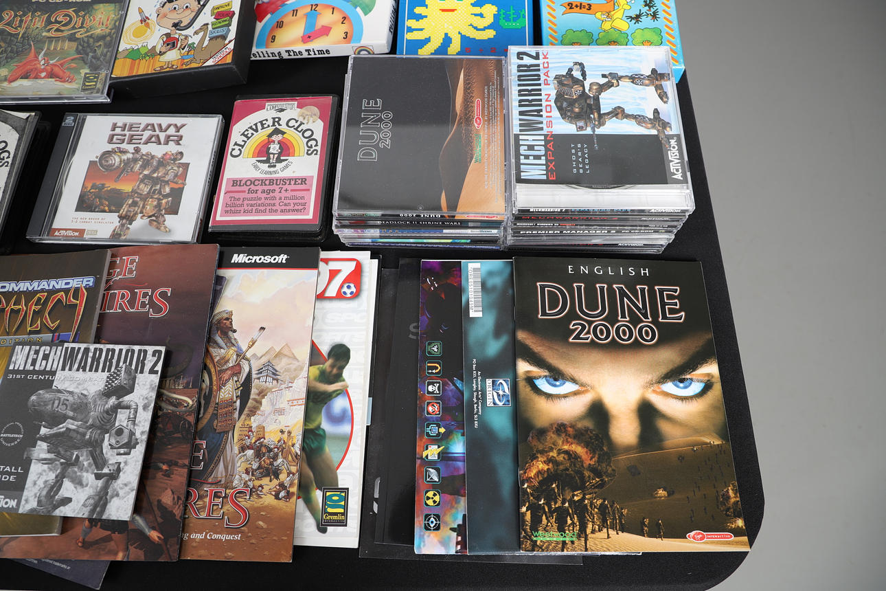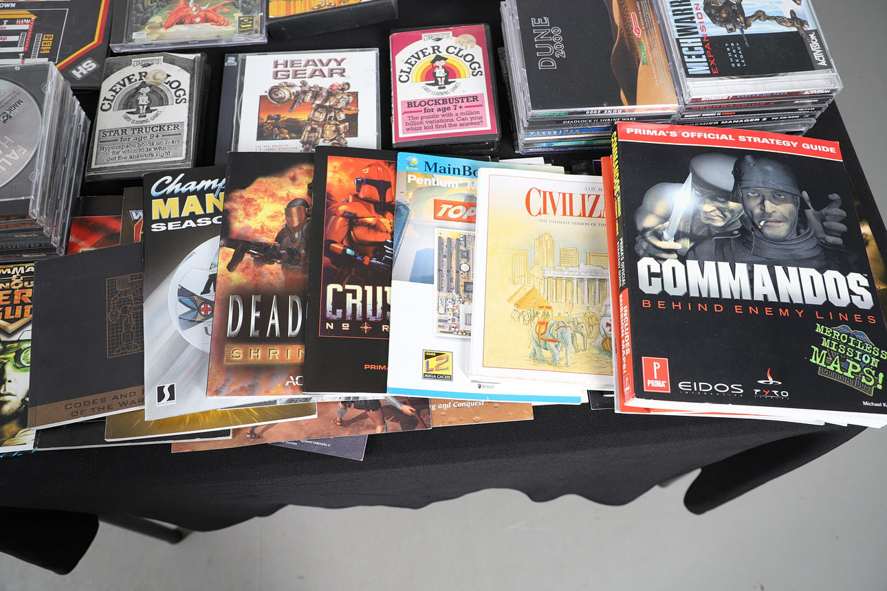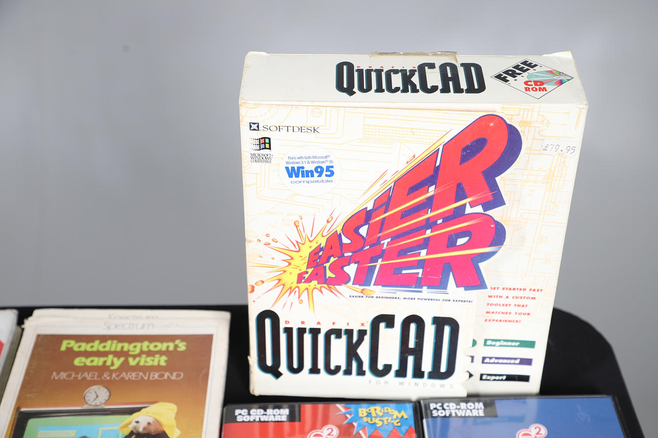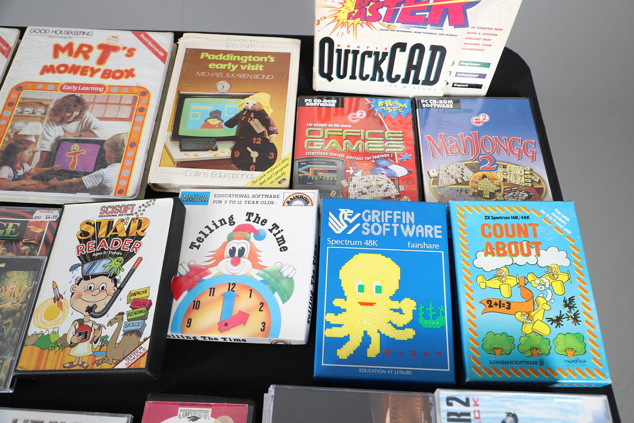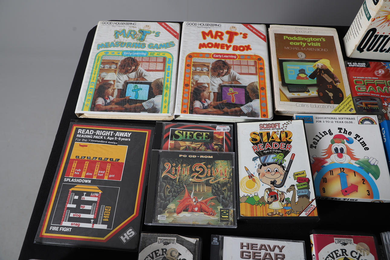 A mixed lot including vintage Sinclair Spectrum, Amiga and PC games. Also with Computer booklets etc. Box for postage, 50cms by 50cms by 50cms.