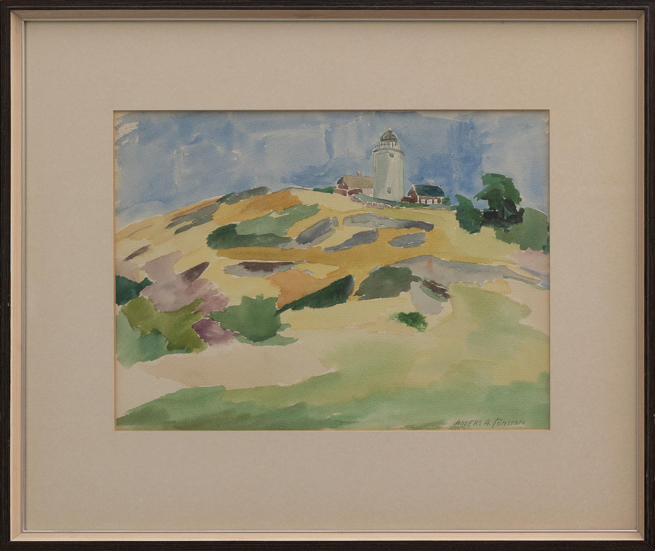 ANDERS A JÖNSSON (1907–2002). Lighthouse, watercolor, signed.