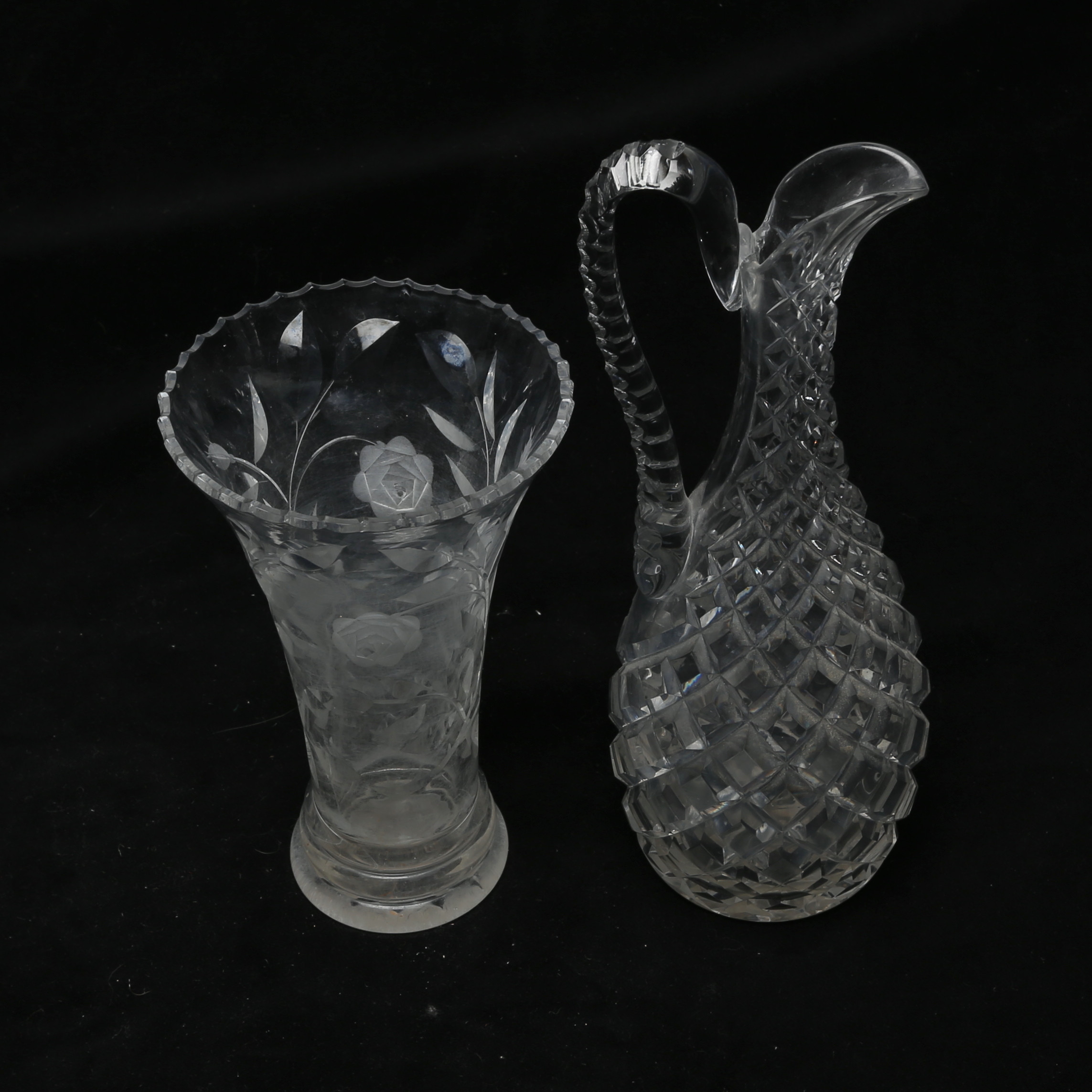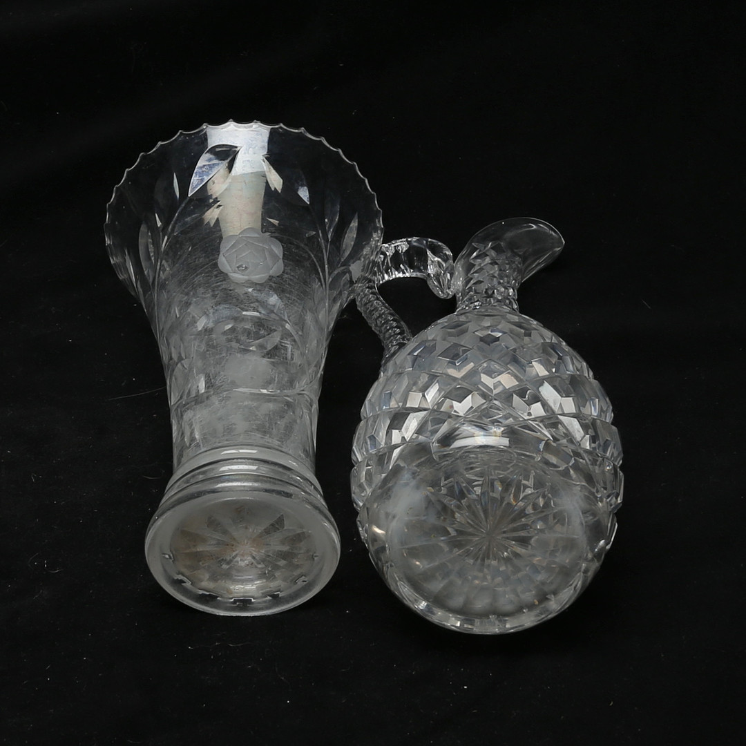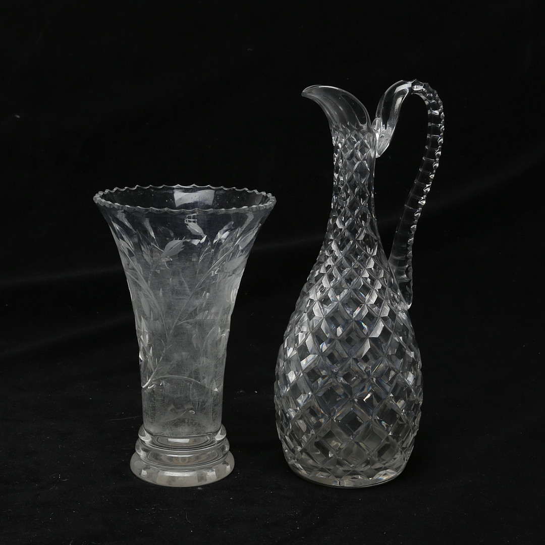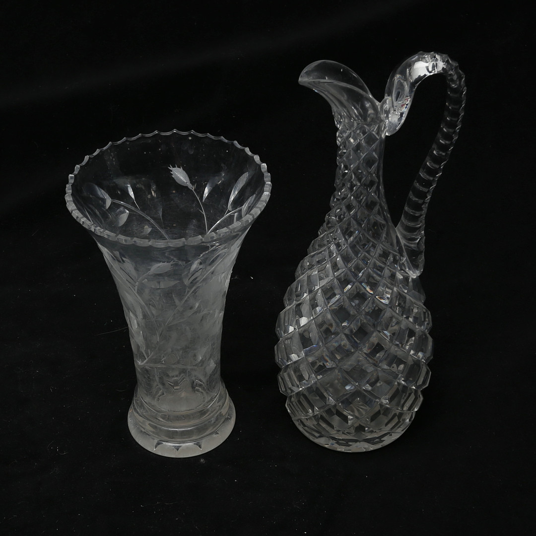 5006958. A glass decanter and vase.