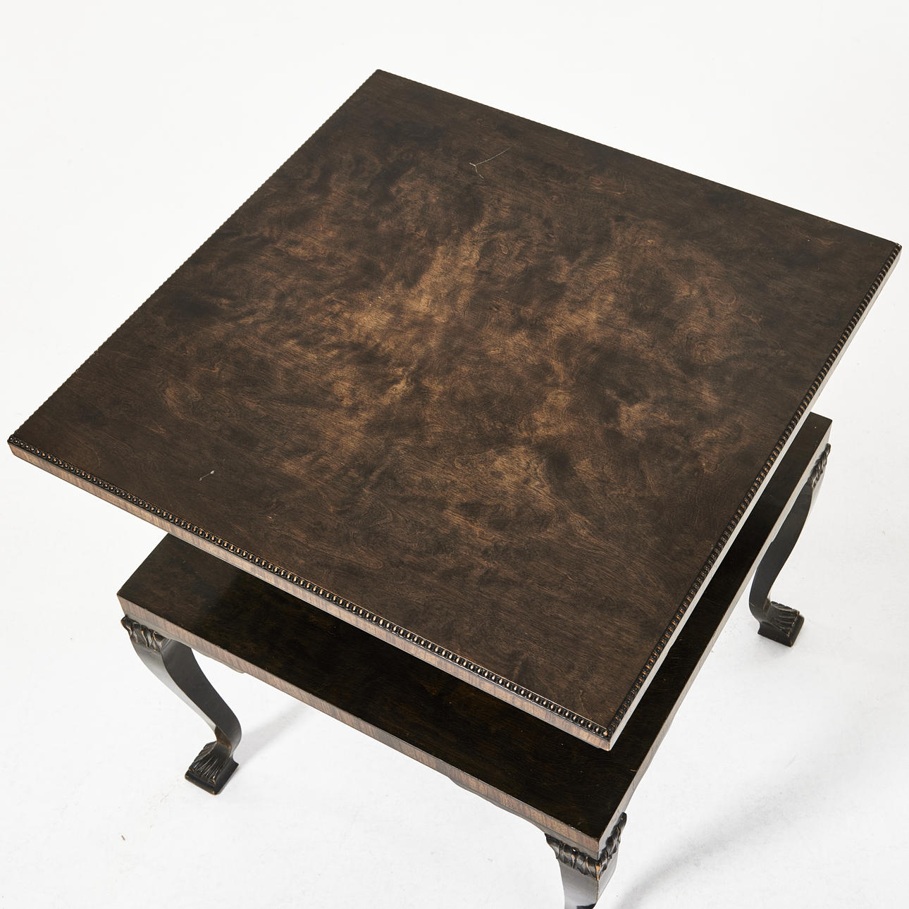 Disc with pearl border, curved legs, sculpted footings, height approx. 63, 58x58.