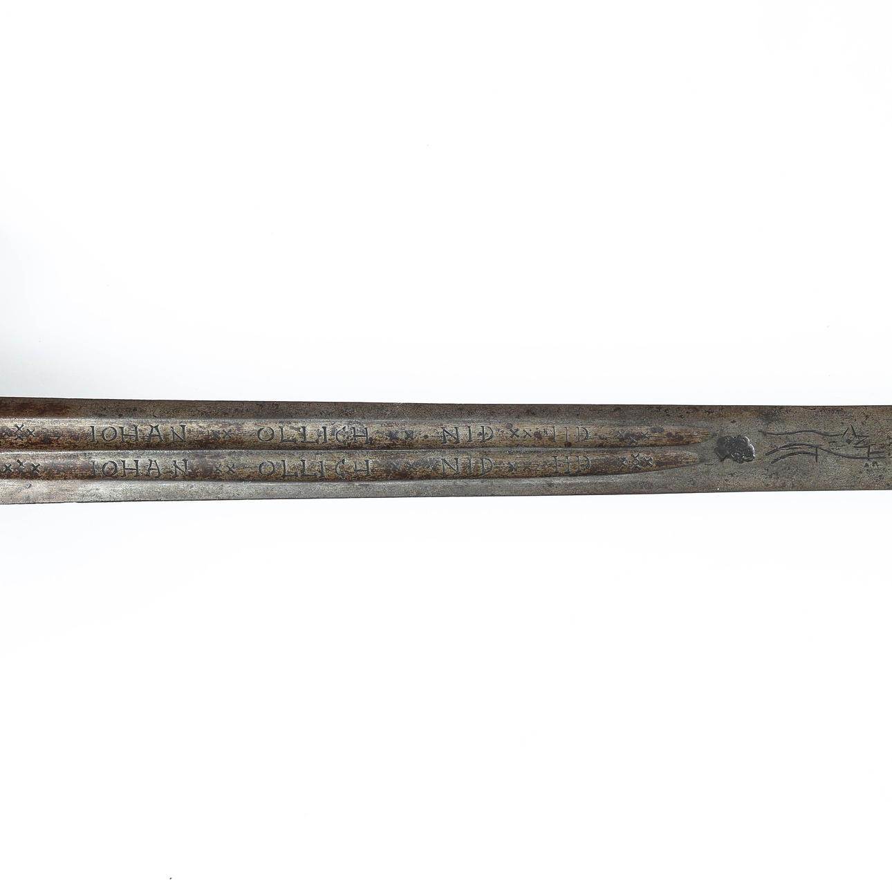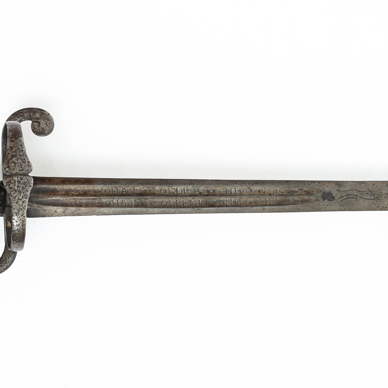 Värja, composite, blade with marking JOHAN OLLICH and running wolf.