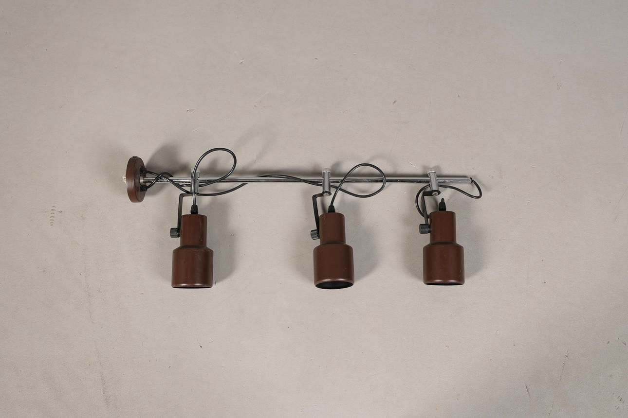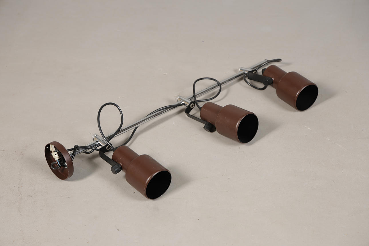 The chromed arm with a set of three brown spotlights, approx. 70cm length.
