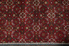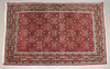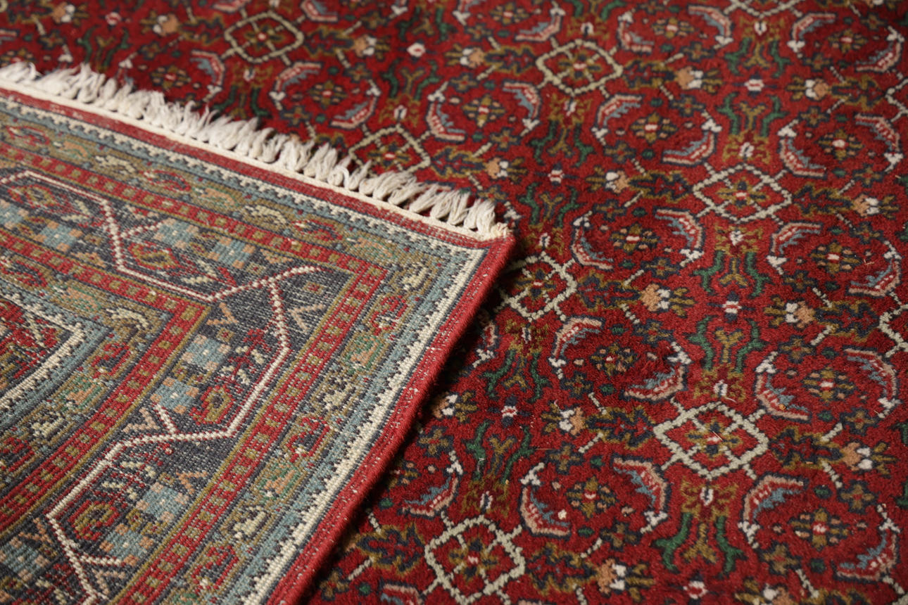 The red ground is decorated with repeating guls and floral designs, having repeating multiple borders and tassel ends, 240cm by 169cm.
