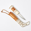 Shank in reindeer horn and birch with slats in fists, steel blades from Brusletto. knife sheath with richly engraved decor