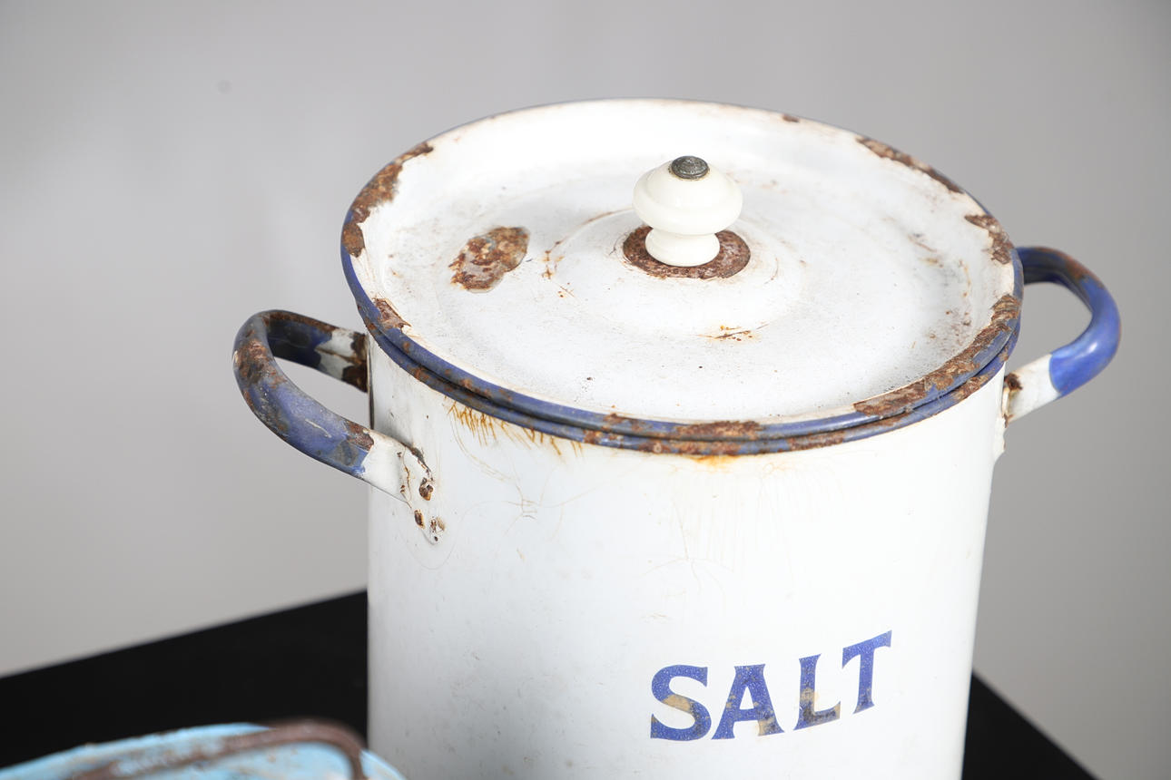 Wear commensurate with age and use. Hat case with dents, warping and other imperfections. Tins with corrosion. See online images.