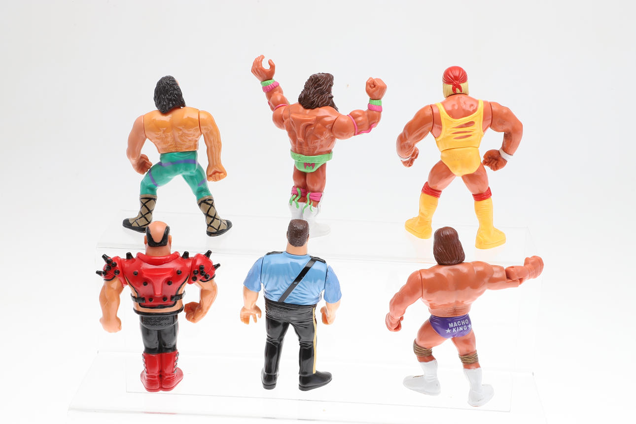 WrestleMania figures and others including Hulk Hogan. Largest 12cms high.