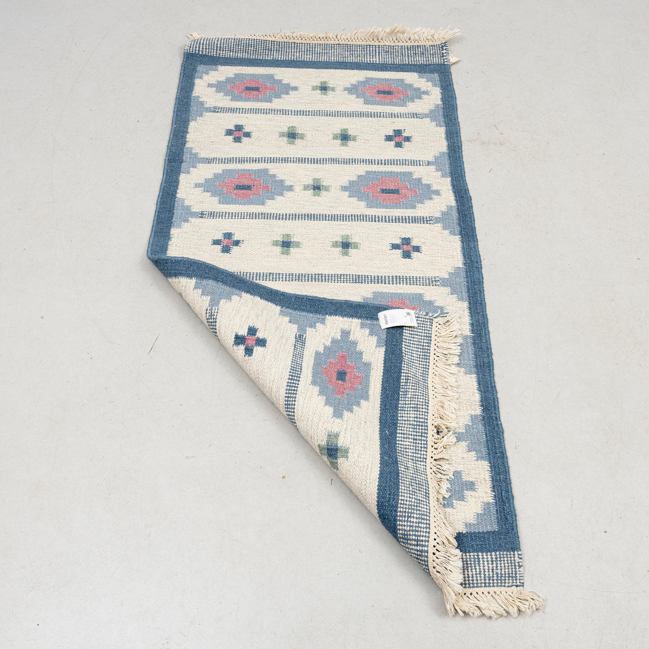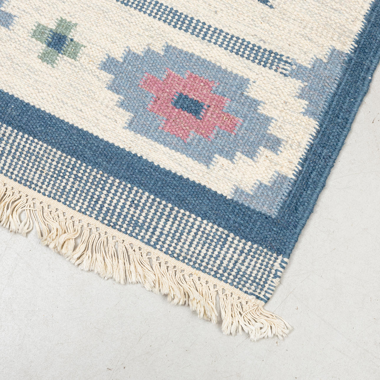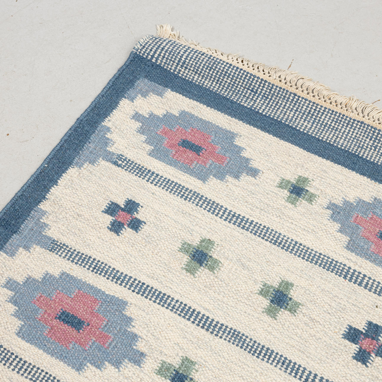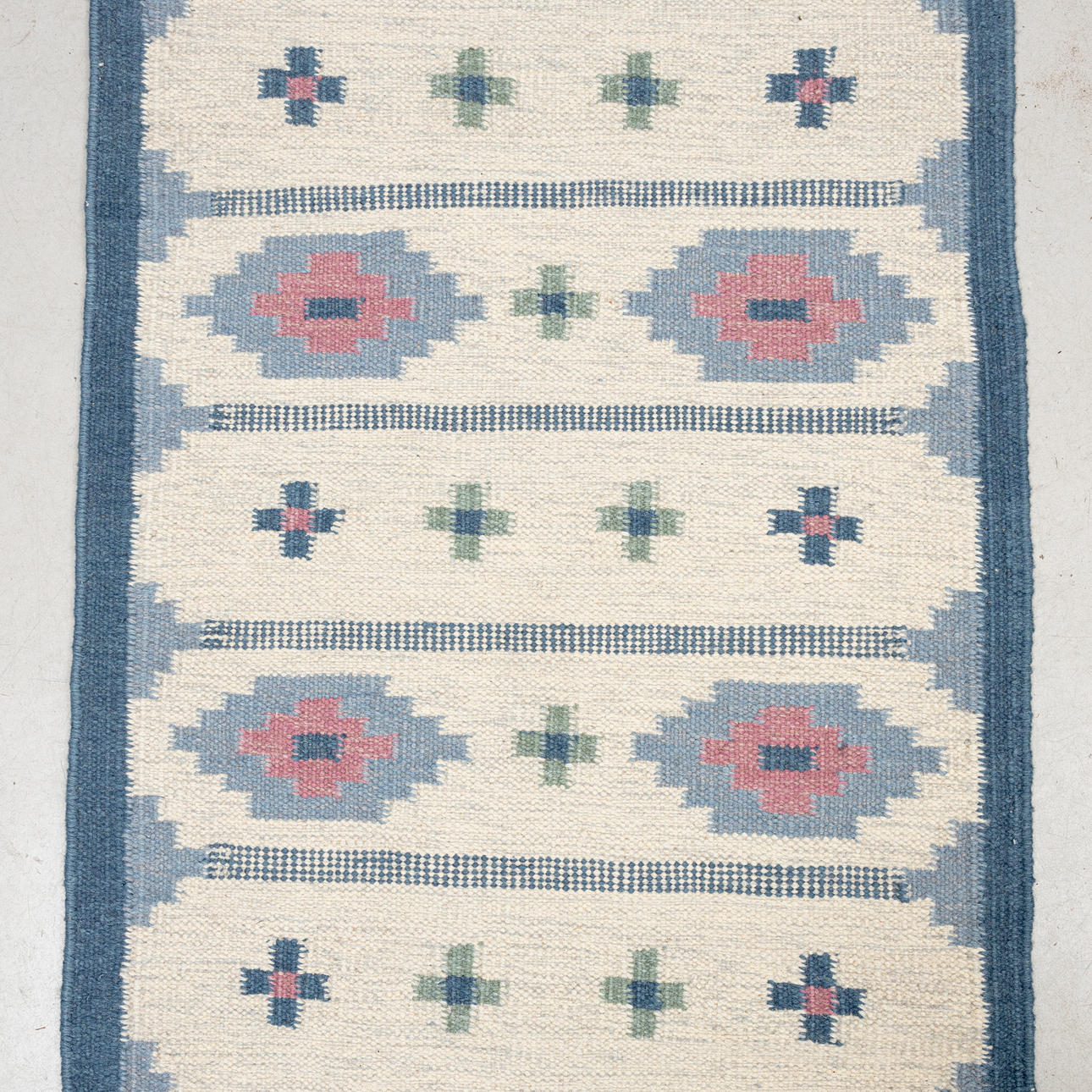 Geometric pattern in blue tones against light background. Approx. 156 x 82 cm.