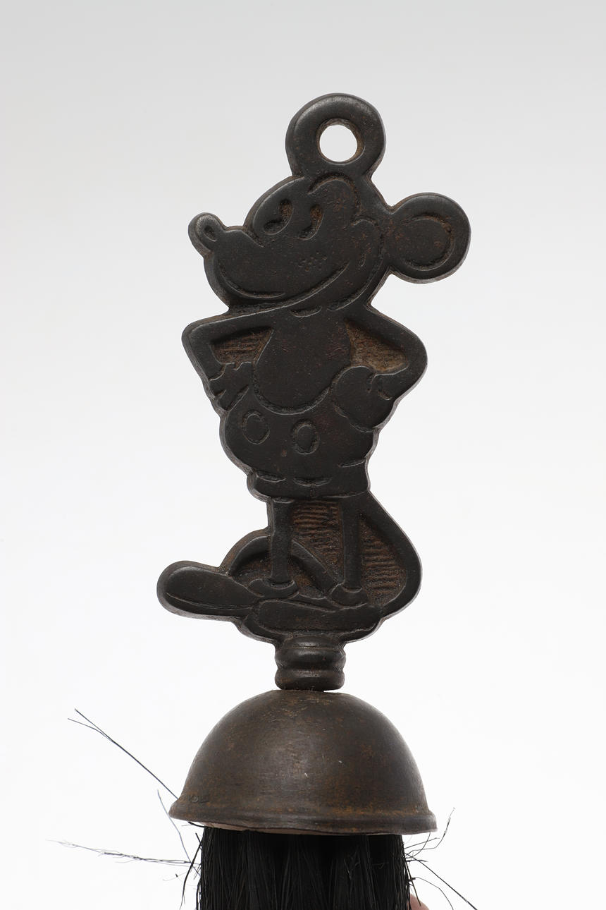 A fireside brush with a Mickey Mouse cast handle, 24cm x 6.5cm.