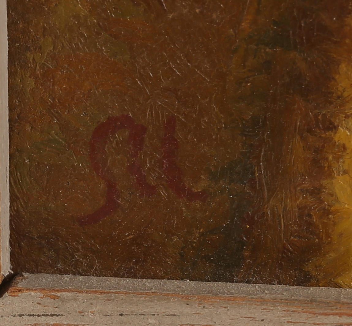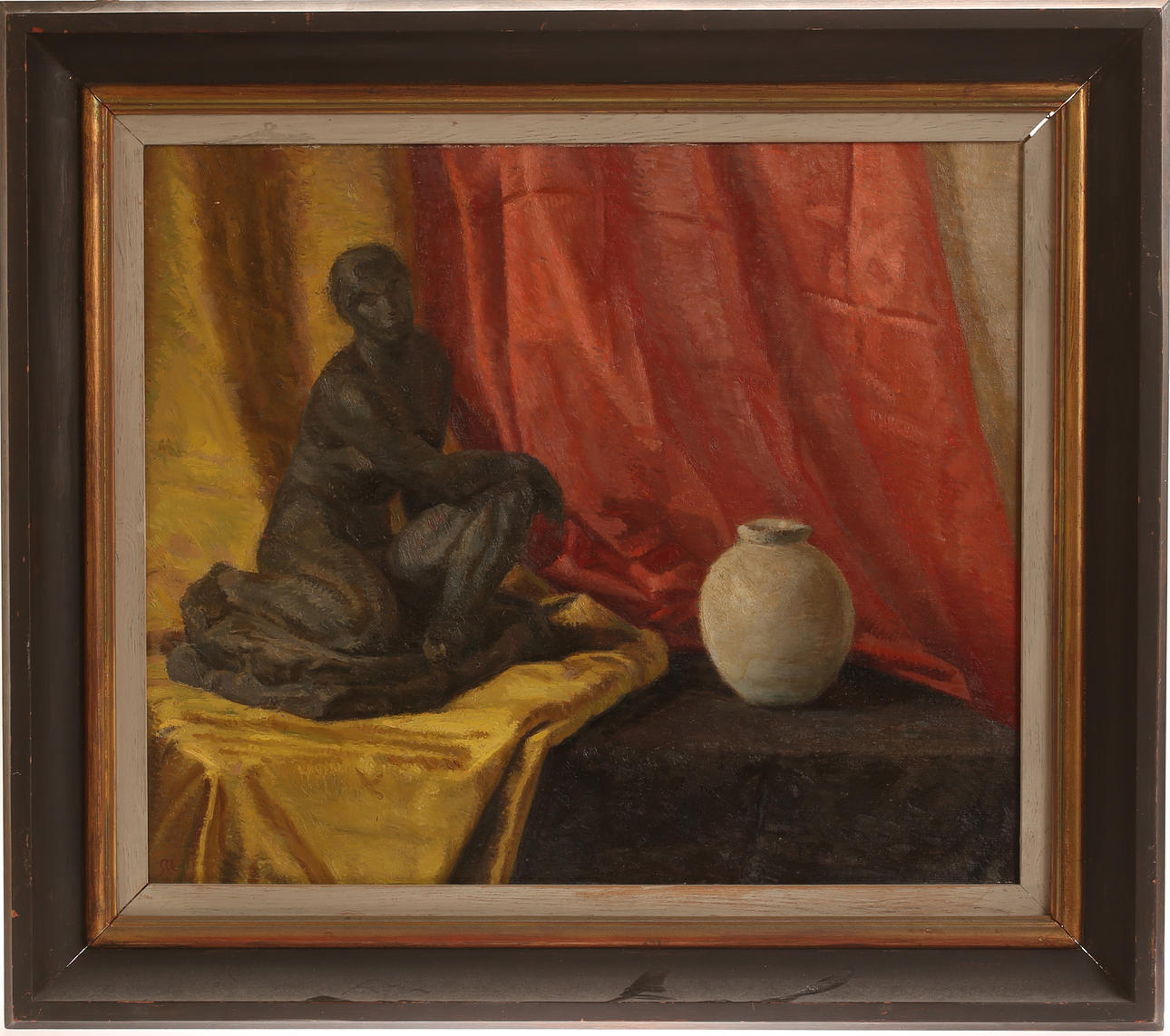 5007620. SIGFRID ULLMAN. Oil on panel, “Arrangement with white pot”, monogram signed.