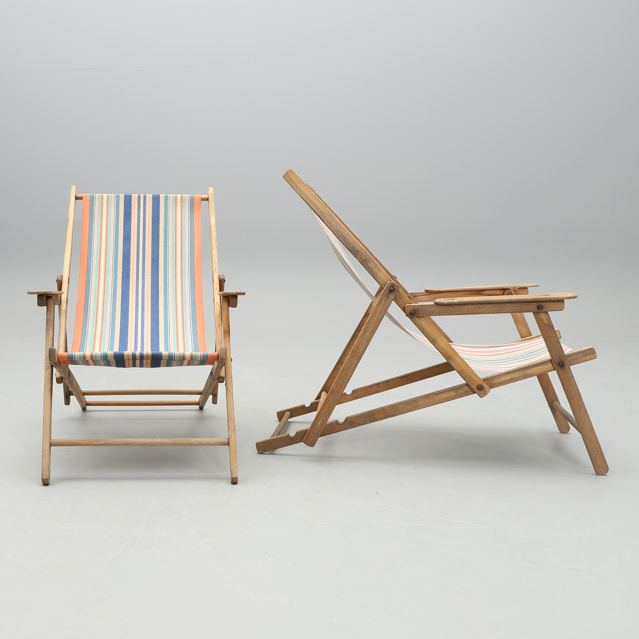 5007656. Three folding sun loungers, 20th century.