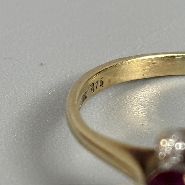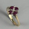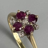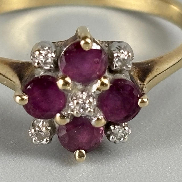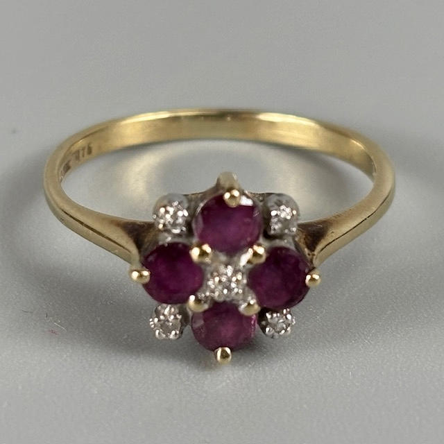 9CT RUBY AND DIAMOND RING.
