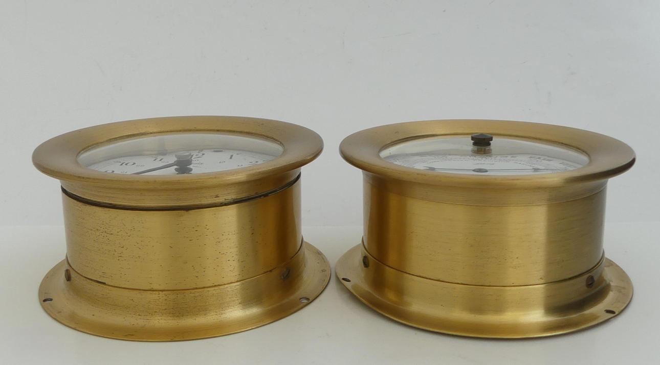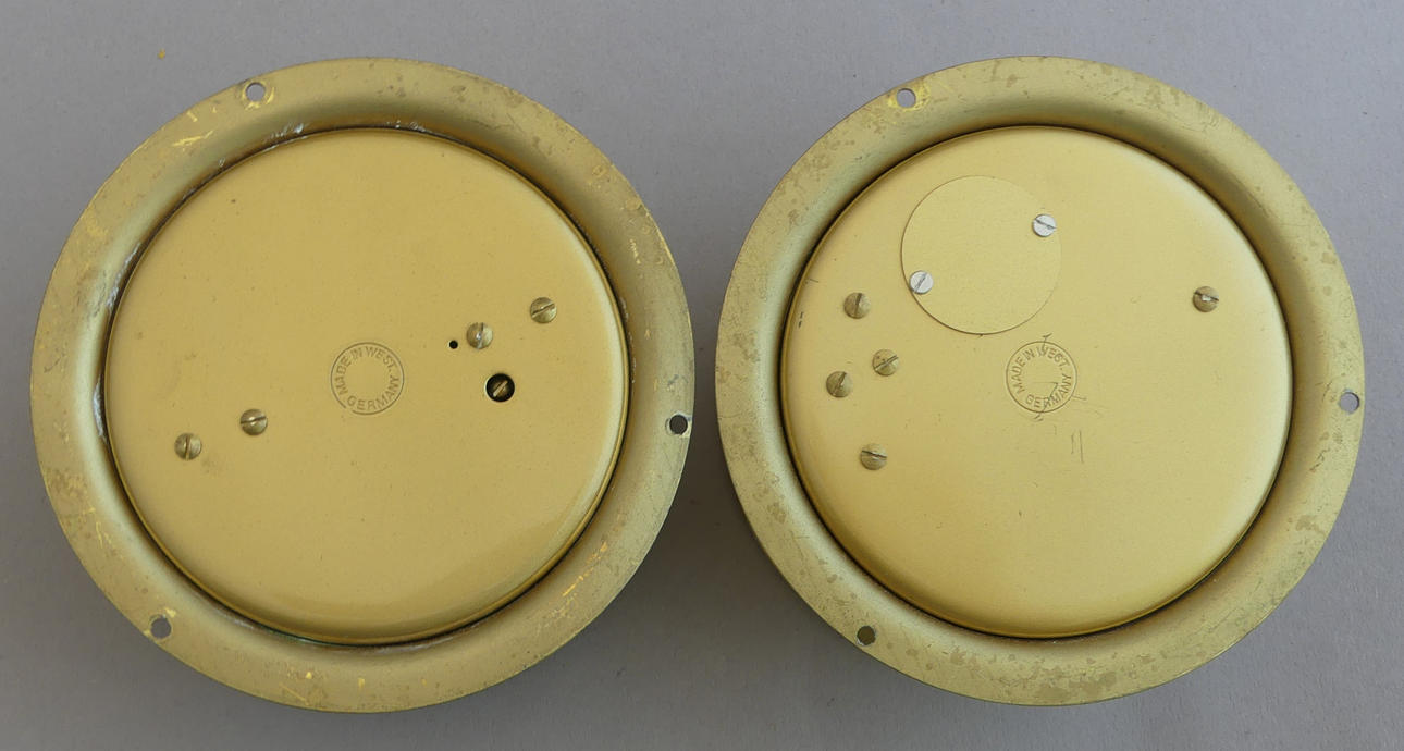 stains on metal, barometer slightly pressed at one attached hole, Worked at the time of cataloging. No functional warranty is provided.