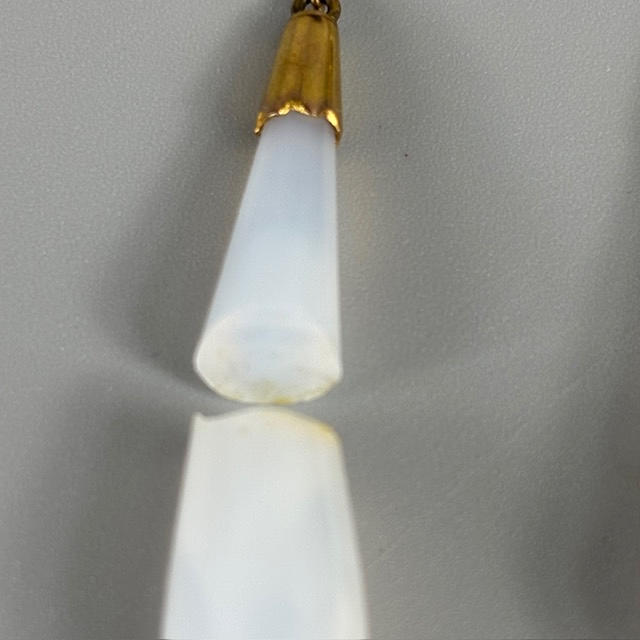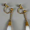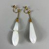 Pair of antique white agate tear drop earrings mounted in 9ct yellow gold.