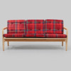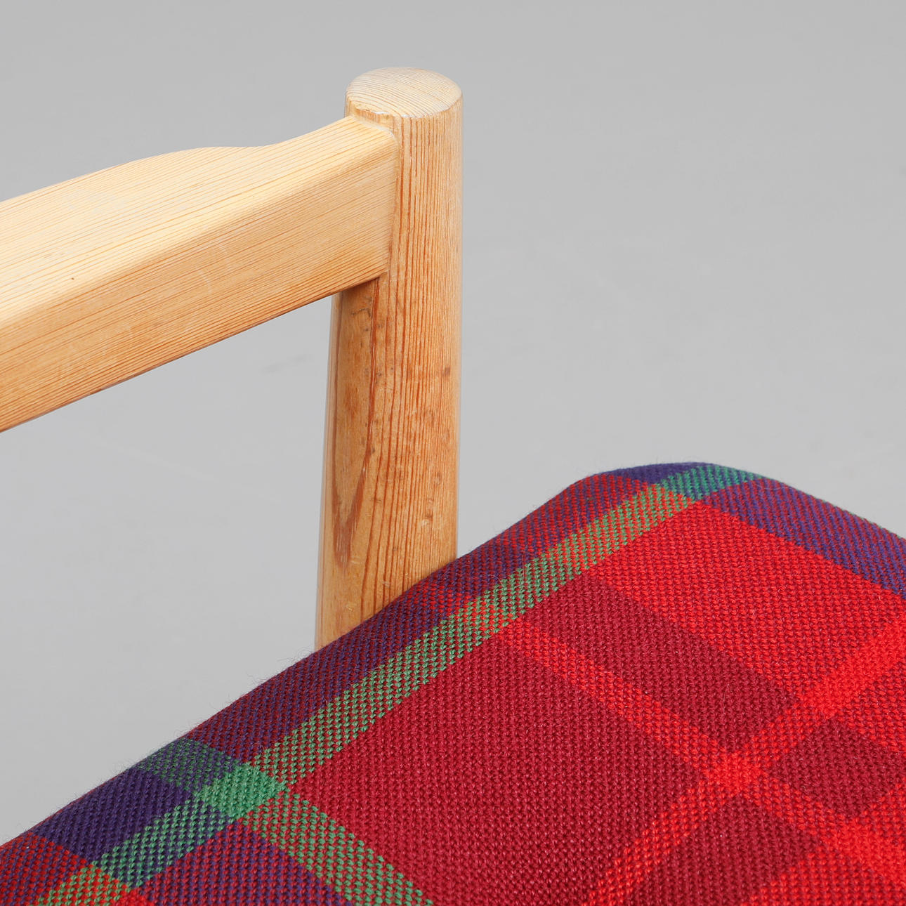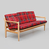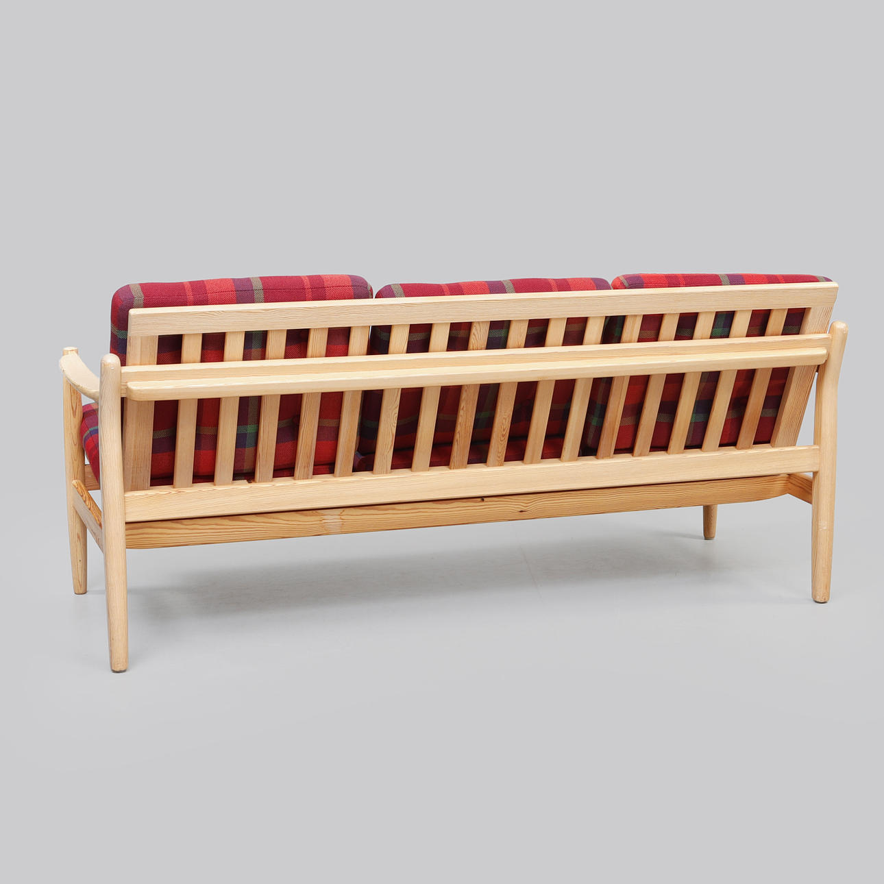 Pine. Seat and back with plush sleeves. Width 168 cm, seat height 43, depth 73, height 74 cm.