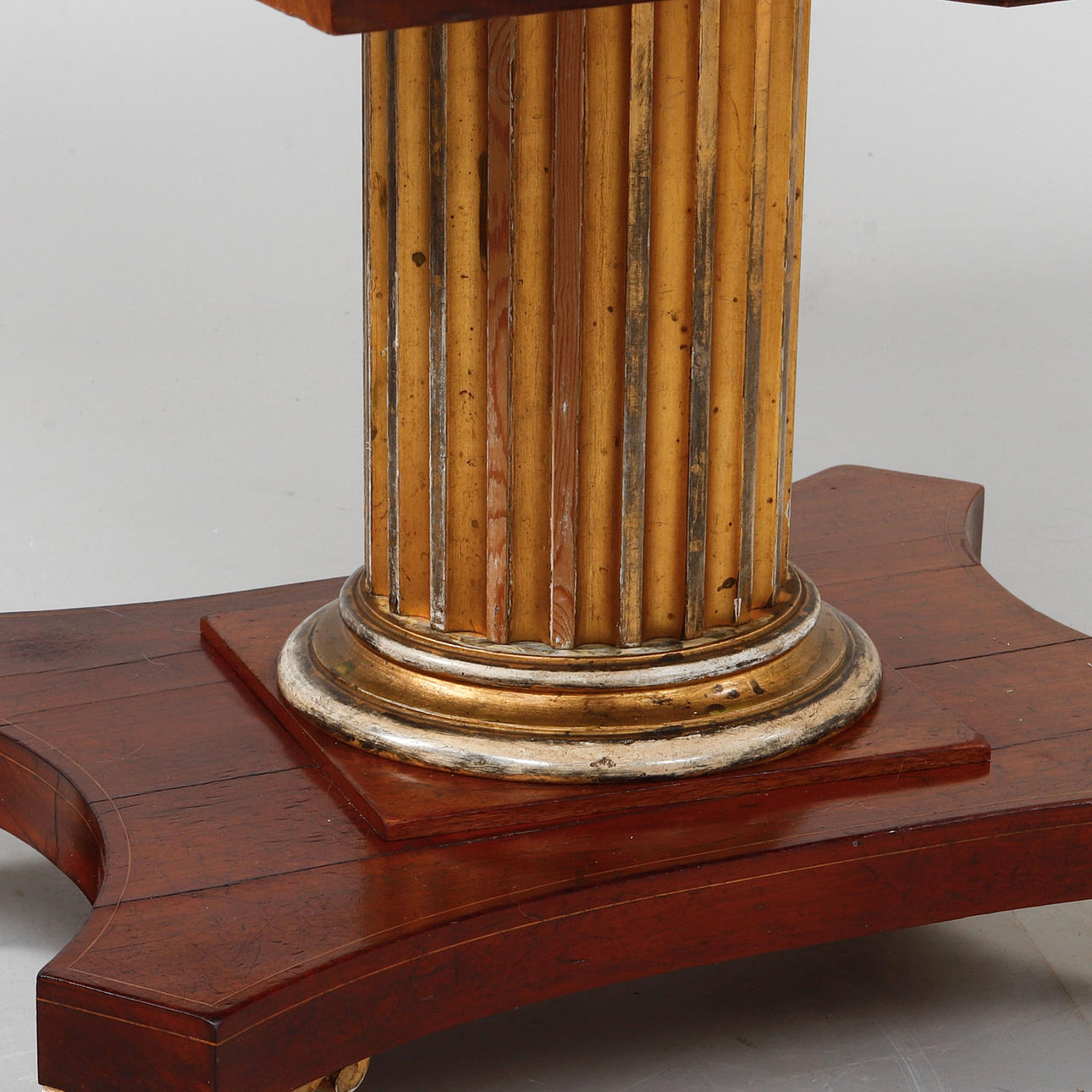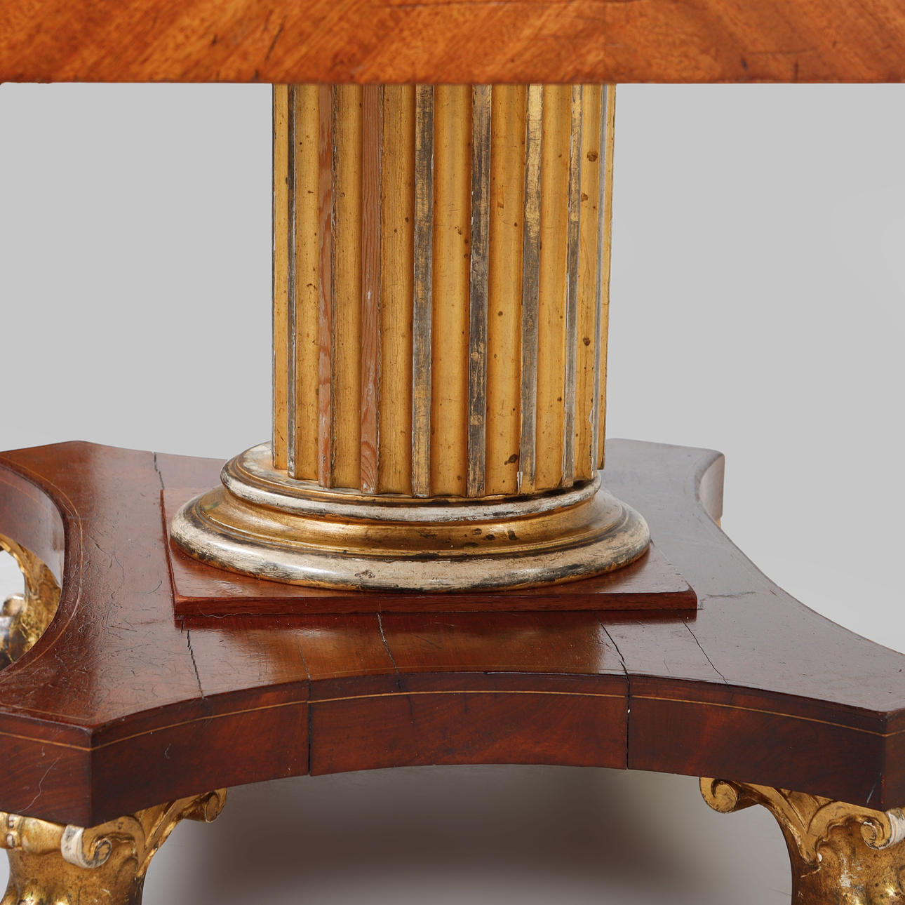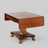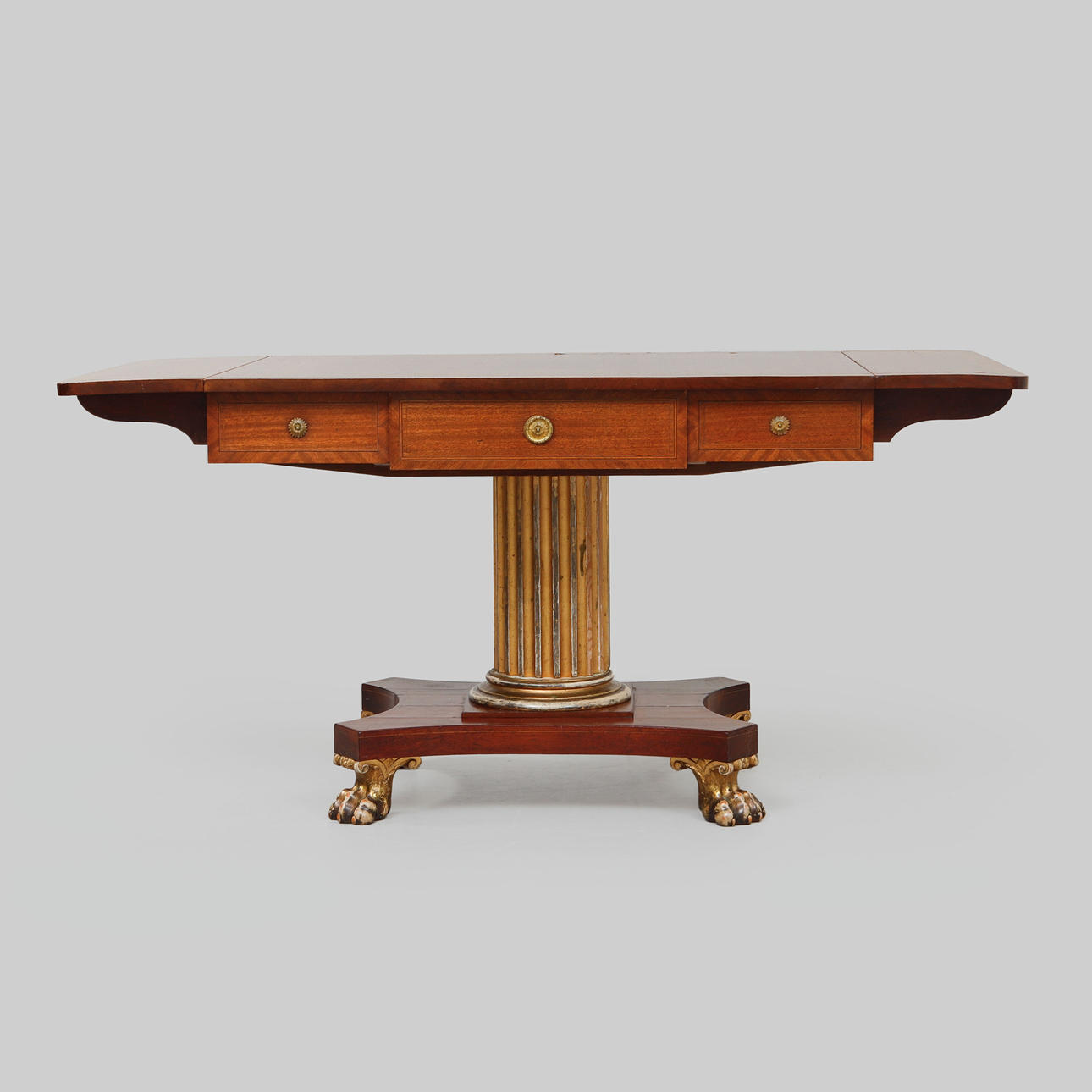 Mahogany. Intarsia decor. Boxes in sarg. Column-shaped legs on four-fit foot with paw ends. Length 25x2 + 108, depth 78, height 75 cm.