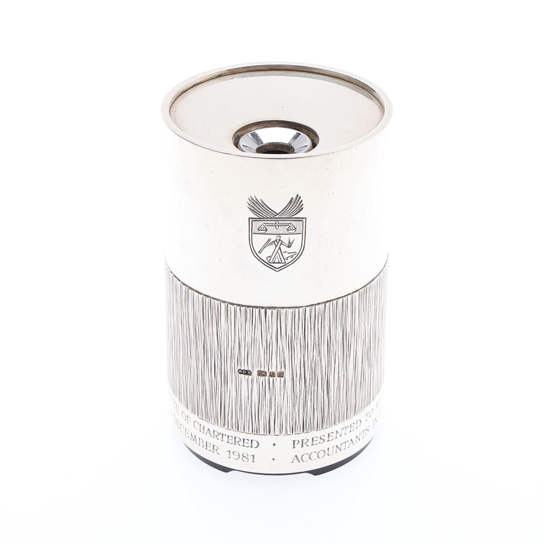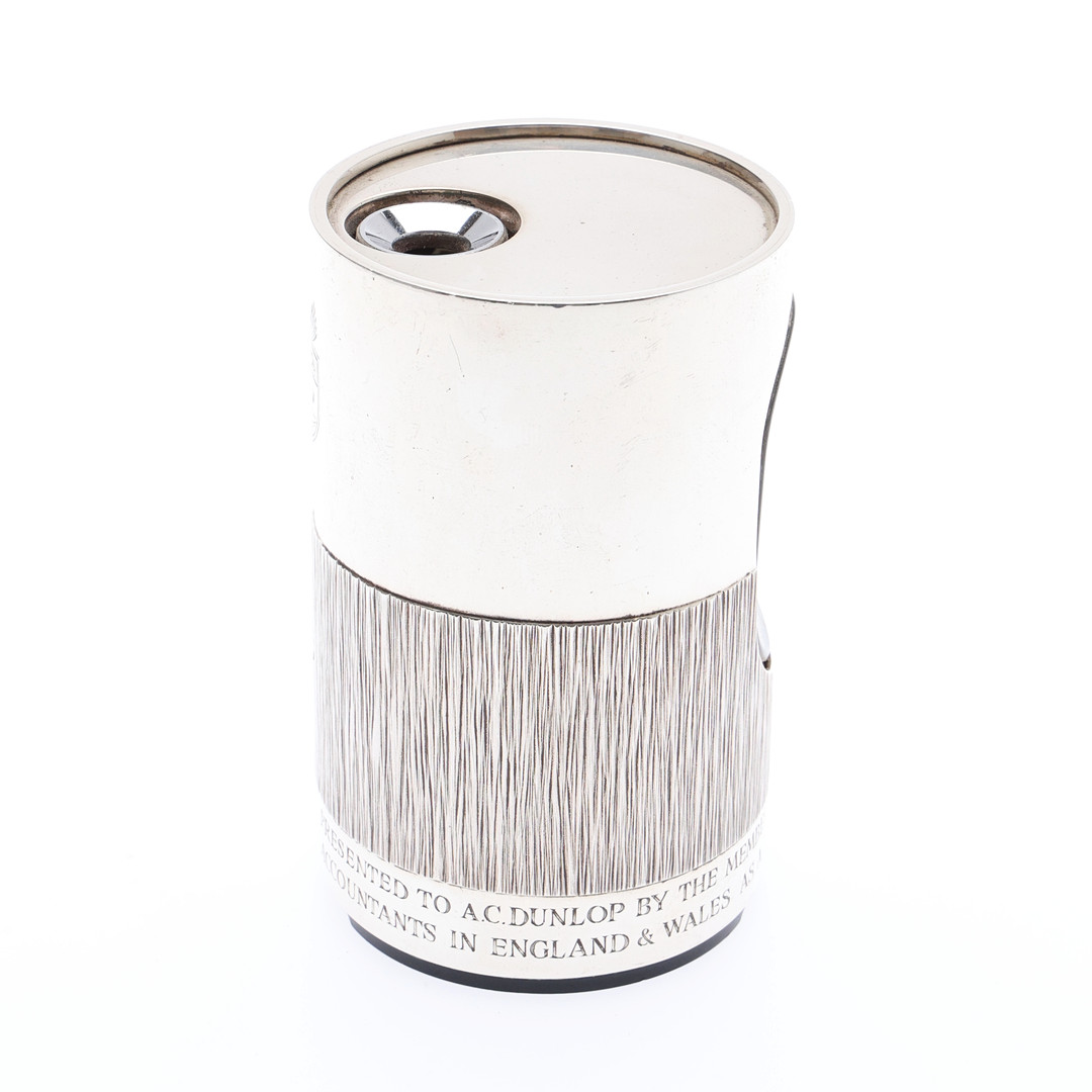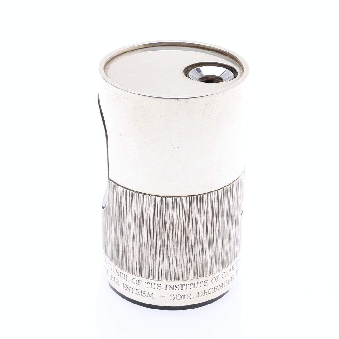 5008025. GERALD BENNEY CBE (1930-2008), SILVER MOUNTED PRESENTATION TABLE LIGHTER.